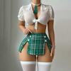 Sexy Women's 5 Piece Cosplay Lingerie Set Short Sleeve Crop Top and Panty Set with Necktie Skirt Set School Girl Outfit