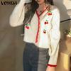 VONDA Autumn Winter Women Long Sleeve Embroidery Casual Short Knitted Sweaters Cardigans