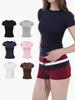 Discover the perfect blend of comfort and style with this slim fit high-elastic short-sleeve T-shirt. Crafted from a soft blend of rayon and viscose, this top offers a breathable and figure-flattering fit. Its solid pattern and classic round neckline make it a versatile choice for any wardrobe. Ideal for petite frames, this T-shirt serves as a stylish base layer or a standout piece on its own.