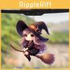 Halloween car decorations, acrylic backseat mirror charm, witch themed car accessory, cartoon style vehicle ornament, festive dashboard decor, Halloween back mirror hanging, stylish car interior decor, holiday themed car pendant