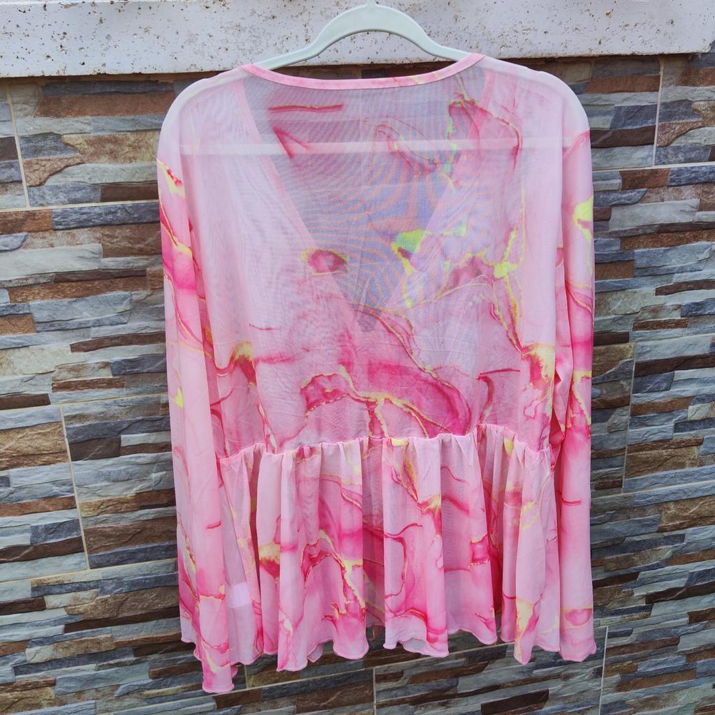 Jeg kjøpte denne toppen og likte den veldig godt! Designet med V-hals gir et elegant og feminint utseende som passer spesielt godt for en ferie- og avslapningsatmosfære. Toppen føles lett og behagelig, takket være kombinasjonen av bomull og polyester som tillater ventilasjon og komfort hele dagen. De utviklende og vide ermene tilfører plagget et unikt og flytende preg, noe som gjør toppen vakker og også usedvanlig komfortabel. Det løse og draperte snittet tillater fri bevegelse uten å føles stramt eller begrensende.. De store størrelsene (1XL til 4XL) gjør toppen tilgjengelig og komfortabel for et bredt spekter av kvinner, og jeg følte at toppen smigret kroppsformen og tilførte eleganse i en intellektuell og lett stil. Jeg anbefaler den virkelig til de som leter etter et plagg som forener komfort med raffinert design.
