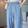 Tencel denim wide-leg pants women's spring and autumn new high-waisted straight casual pants loose drawstring mopping trousers