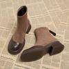 Retro thick heel high heel short boots women's 2025 autumn and winter new thick-soled heightening elastic boots velvet versatile thin boots