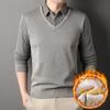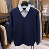 New Fall and Winter Fake Two-piece Knitted Versatile Striped Shirt Collar Coat Men's Sweater Base Shirt Underwear Top