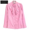 brand: BALLSEY type: 23Stainless Steel Light Pink Bloom Cut Jacquard Puff Sleeve Blouse color1: Light pink