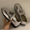 Cowhide version~ New Velcro flat-bottomed ballet training shoes niche square head matte retro lace-up casual shoes women