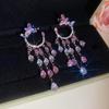 Silver Needle Pink Butterfly Zircon Cutout Stud Earrings - High-End Luxury Fashion Jewelry
