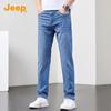 Experience ultimate comfort and style with JEEP Men's Tencel Lyocell Blend Straight-Leg Denim Jeans. Crafted from a soft, thin, and slightly stretchy fabric, these jeans are perfect for spring and summer wear. Featuring a classic straight-leg, loose fit and a natural waist, they offer a relaxed yet smart casual look for everyday and travel.