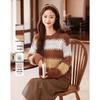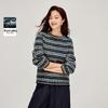 INMAN Women's Relaxed Fit Color Block Stripe Round Neck Knit Sweater