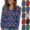 Women's Fashion V-Neck Button-Up T-Shirt With Christmas Print Long-Sleeved Top