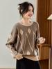 Autumn Winter Women Round Neck Middle-aged Mothers Jacquard Color Tops Knitted Bottoming Shirts Foreign Style Sweaters
