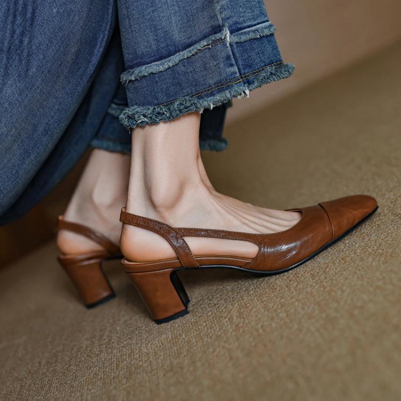 Summer beef tendon sole bag head sandals new women's casual empty sandals cover feet thick heel square head comfortable large size shoes