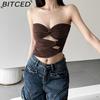 BITCED Spring Women's Solid-Colour Slim-Fit Streetwear Off-the-Shoulder Sleeveless Backless Top