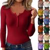 Women's Casual Solid Color V Neck Slim Button Knit Sweater Long Sleeved Base Sweater Sweater