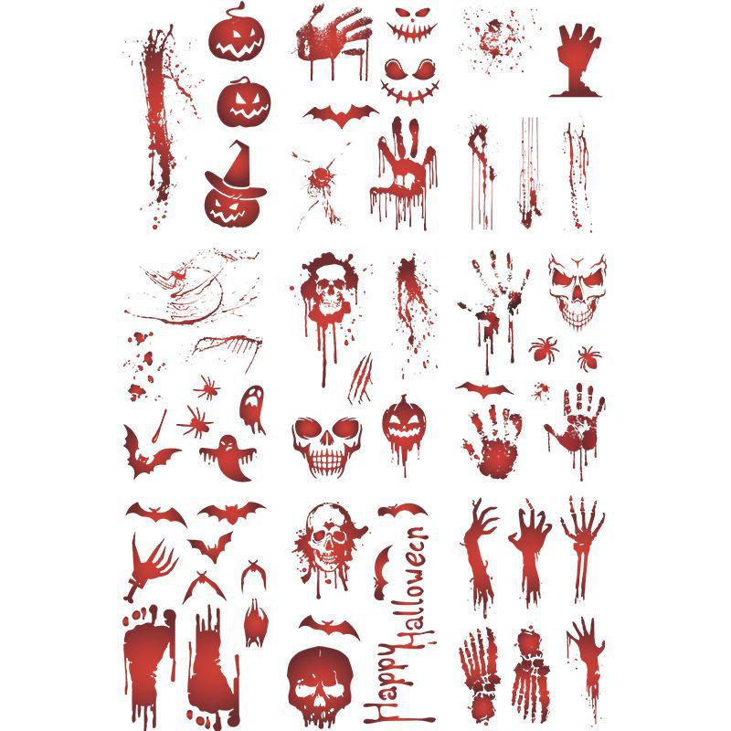 55 Halloween Sticker Patterns: Blood Handprints & Skulls Self-Adhesive Wall Decorations