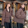 Damska swobodna ciepła uniwersalna kurtka z dużym kołnierzem w jednolitym kolorze z grubej bawełny
