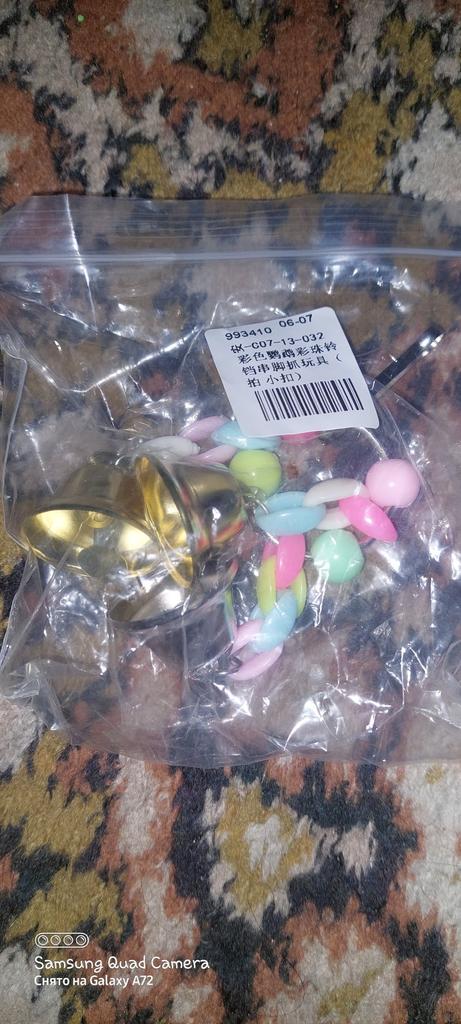 O brinquedo com sinos para papagaios é como na foto, muito bem embalado, atende aos requisitos, recomendo o produto do vendedor, o pedido chegou em um mês. Muito obrigado aos fabricantes e à loja Joom e aos correios da Moldávia