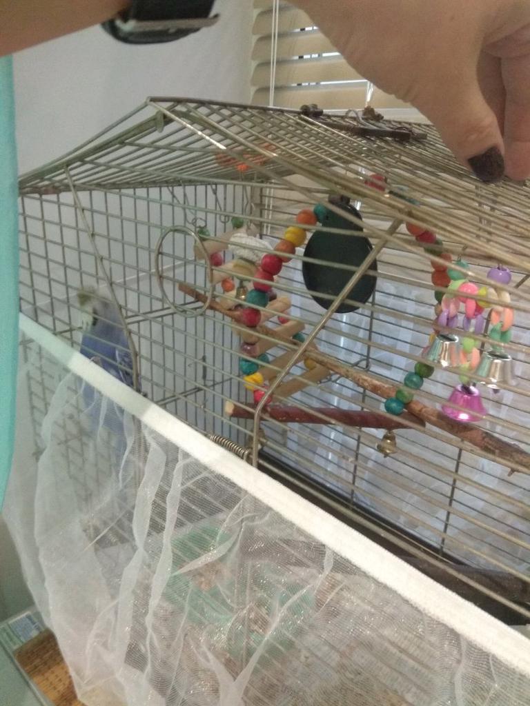 Um pedaço do sino ficou preso no bico do papagaio 2 horas após sua chegada. Muito perigoso