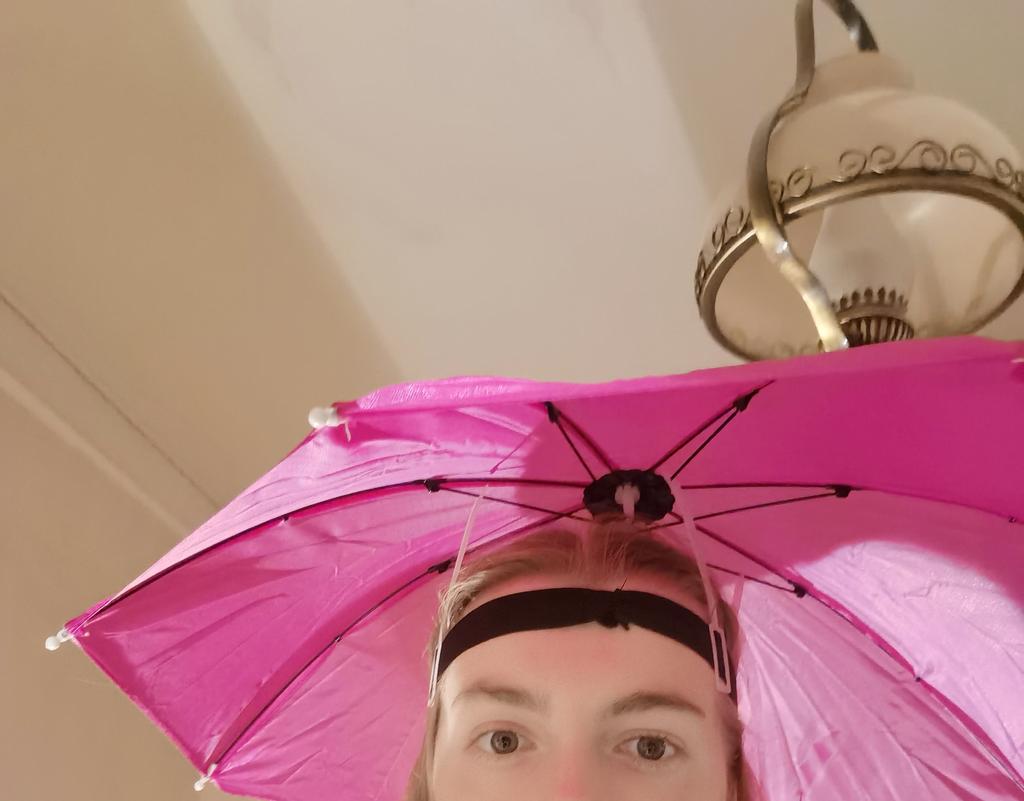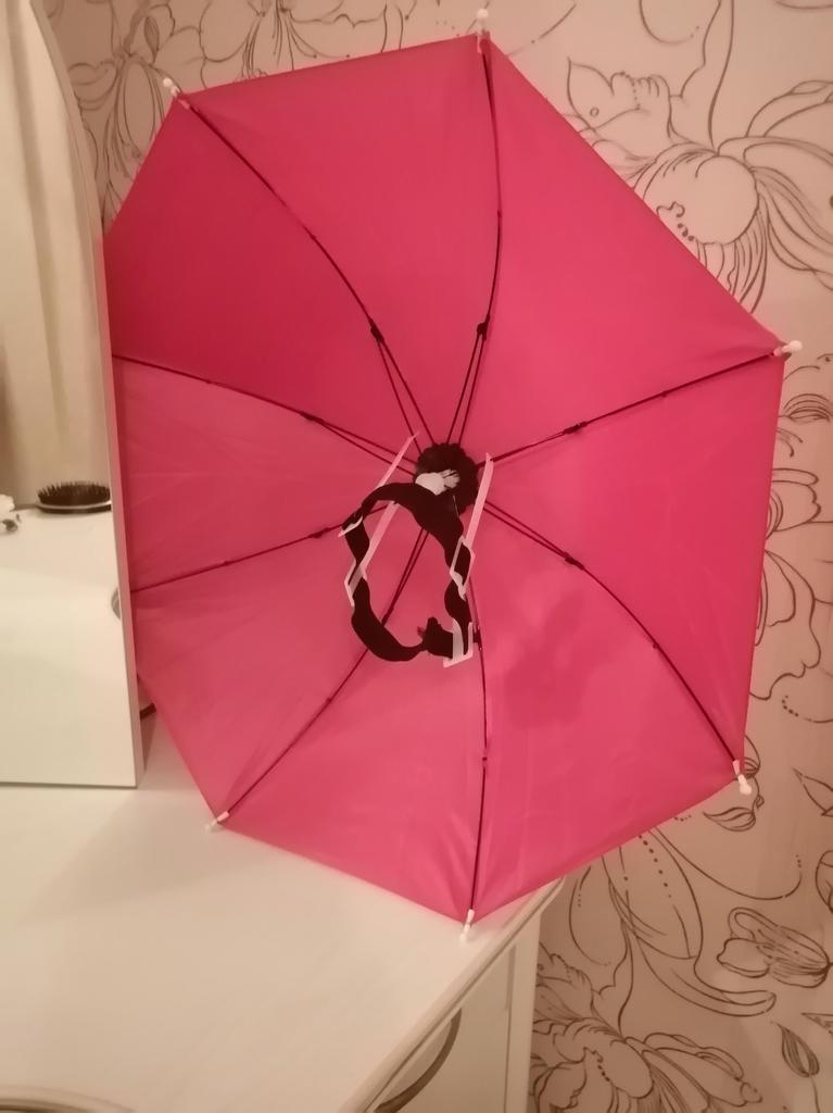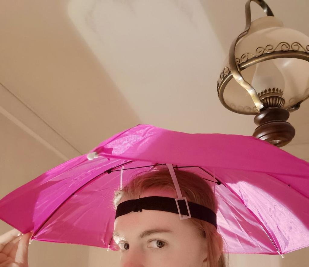 Bem, inesperadamente: um guarda-chuva bem na cabeça! Achei que ela era muito pequena, mas não! É bem grande! Tão legal! Eu gosto disso!