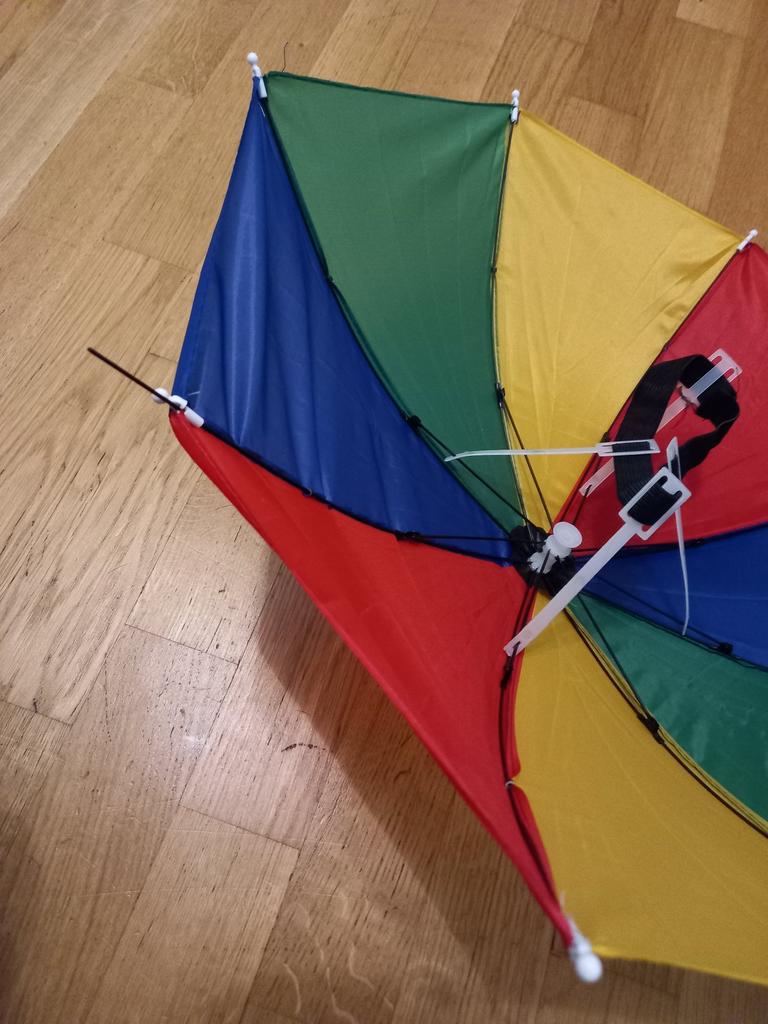 O guarda-chuva é de altíssima qualidade. Fixa bem na cabeça. Adequado para uma criança e um adulto. Obrigado.