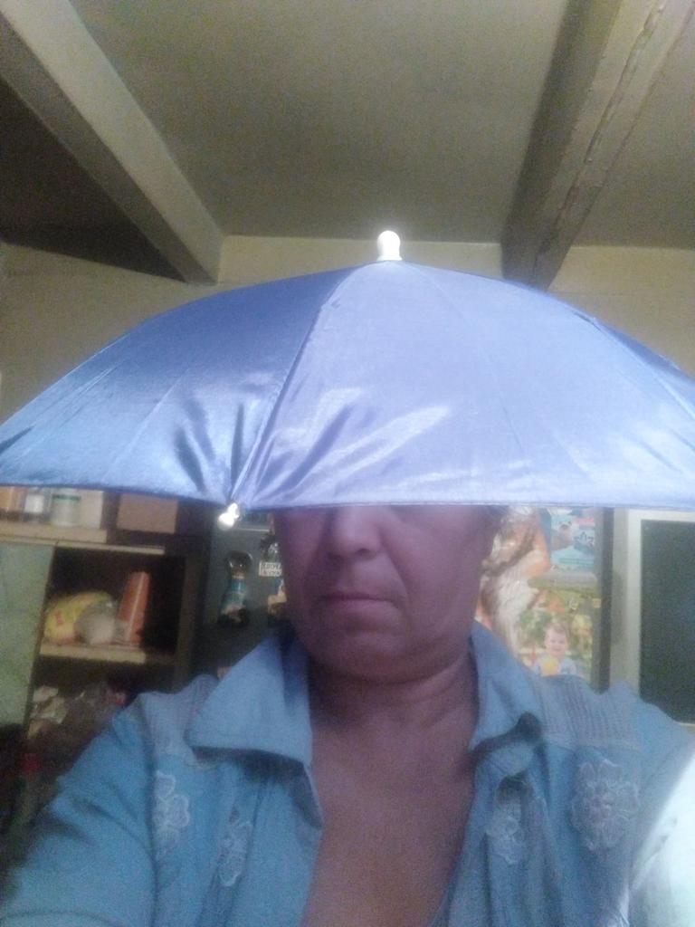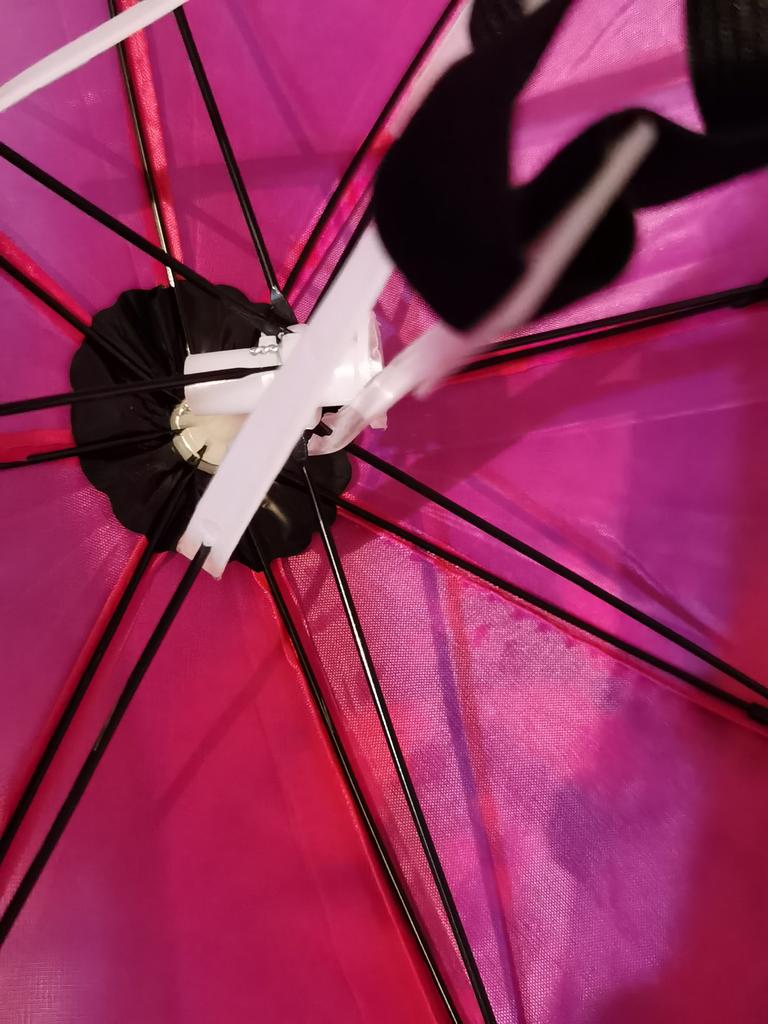 O guarda-chuva abre e fecha, agora você pode tirar as ervas daninhas dos canteiros e simplesmente sair para o jardim em qualquer clima, com as mãos ocupadas com alguma coisa, e ao mesmo tempo estar debaixo de um guarda-chuva!