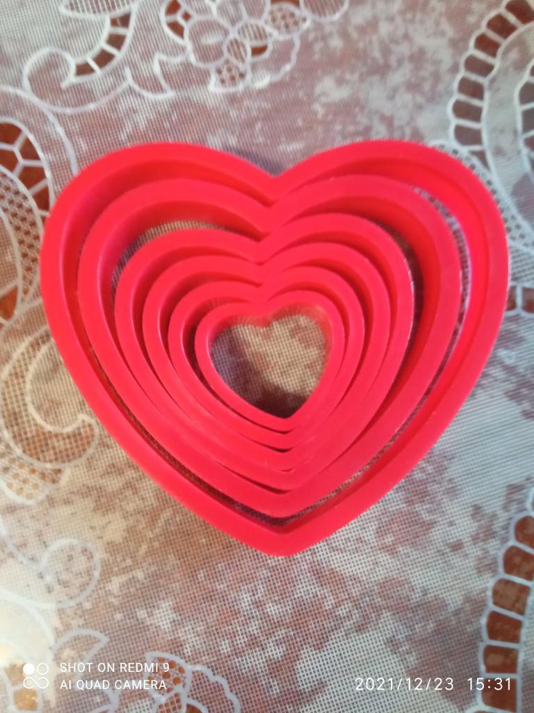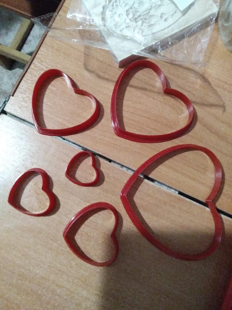 Cortadores recebidos em forma de coração (6 peças), conforme solicitado, apesar de tudo, material de qualidade, obrigado, recomendo