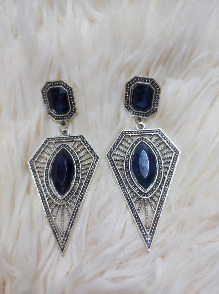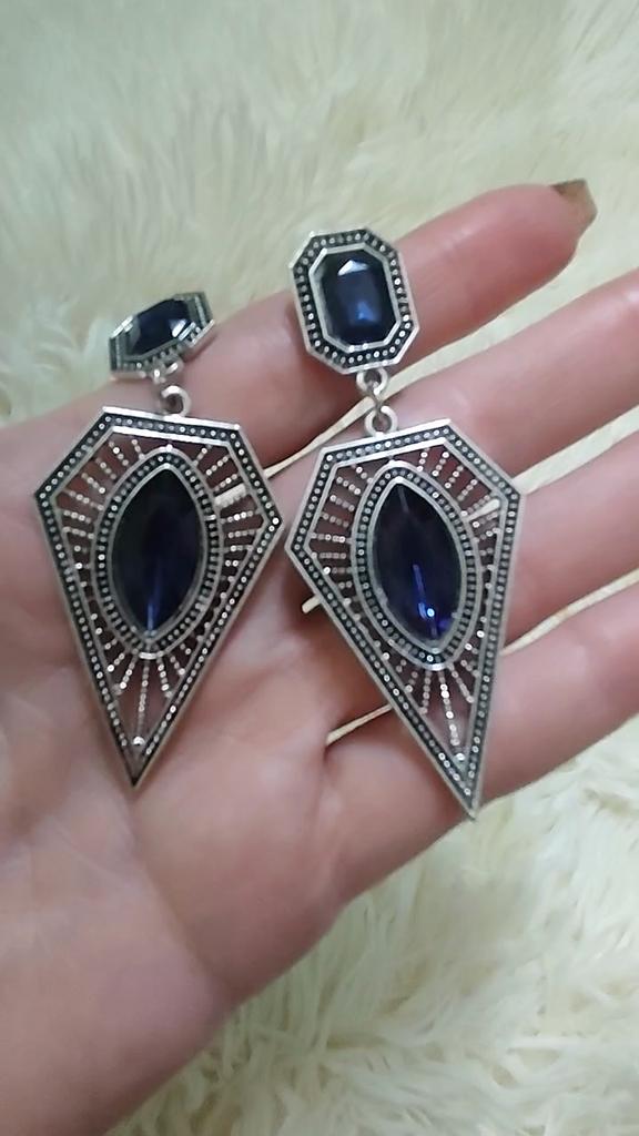 Brincos vintage femininos triângulo oco safira falsa festa casamento joias presente