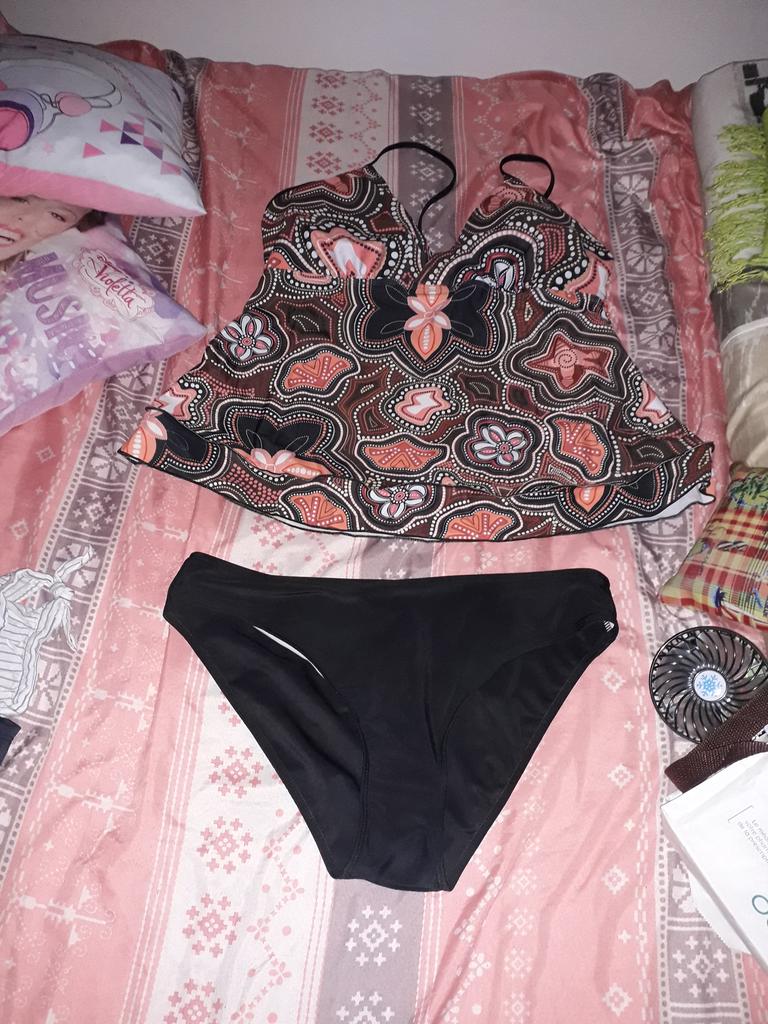 Eu pedi este Tankini (maiô) tamanho pequeno, mas apenas a parte inferior é tamanho pequeno, a parte superior é tamanho grande. Você pode me dizer o que posso fazer, já que não posso usá-lo. Estou muito desapontado