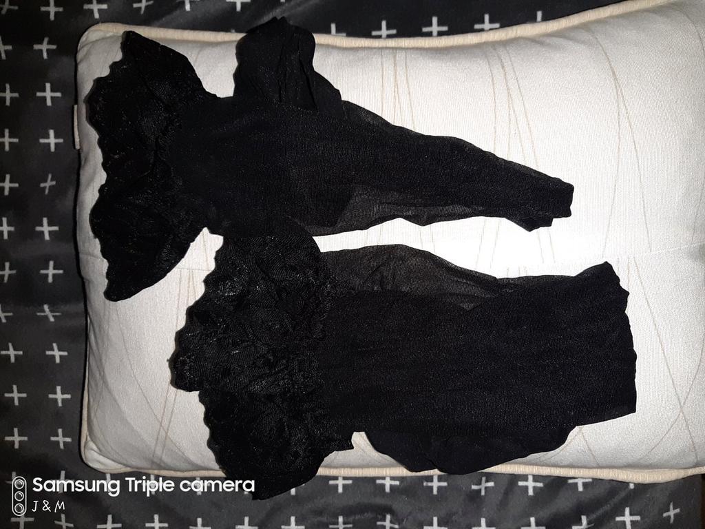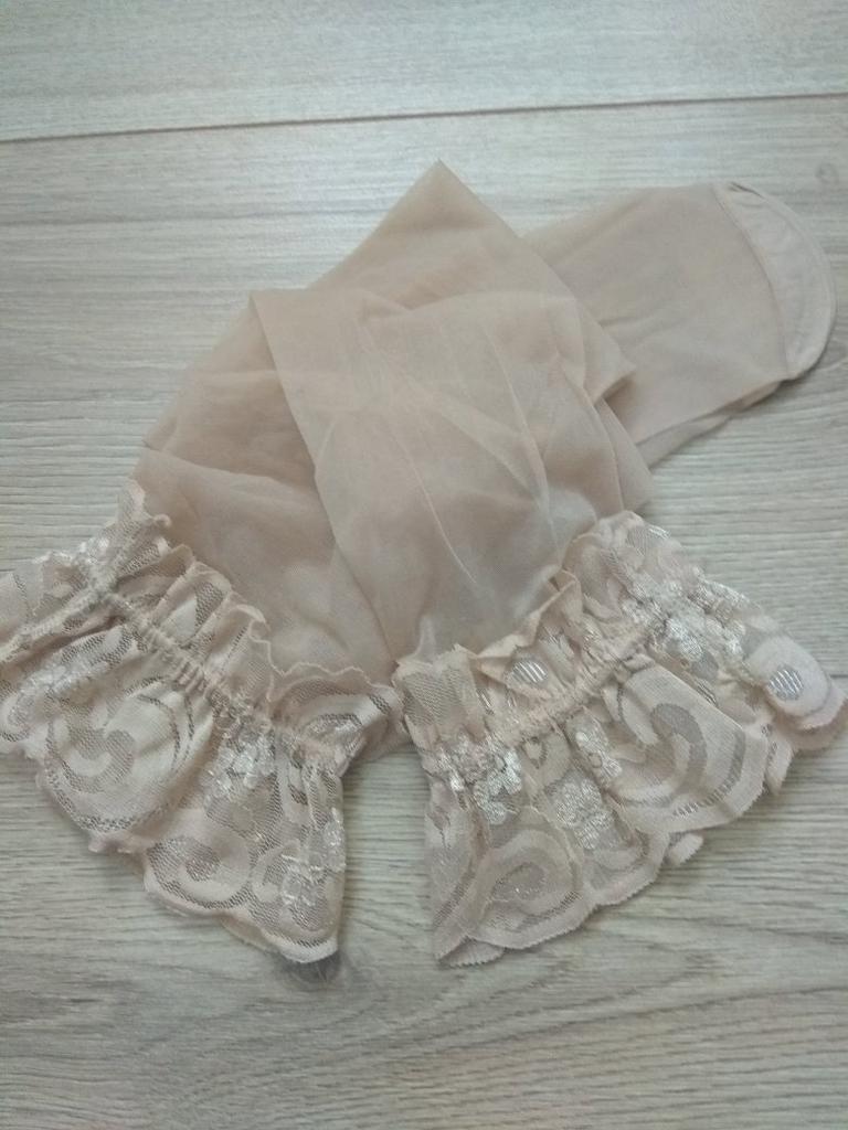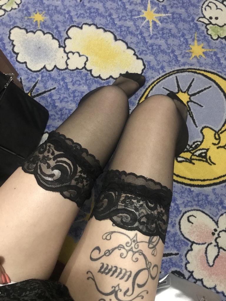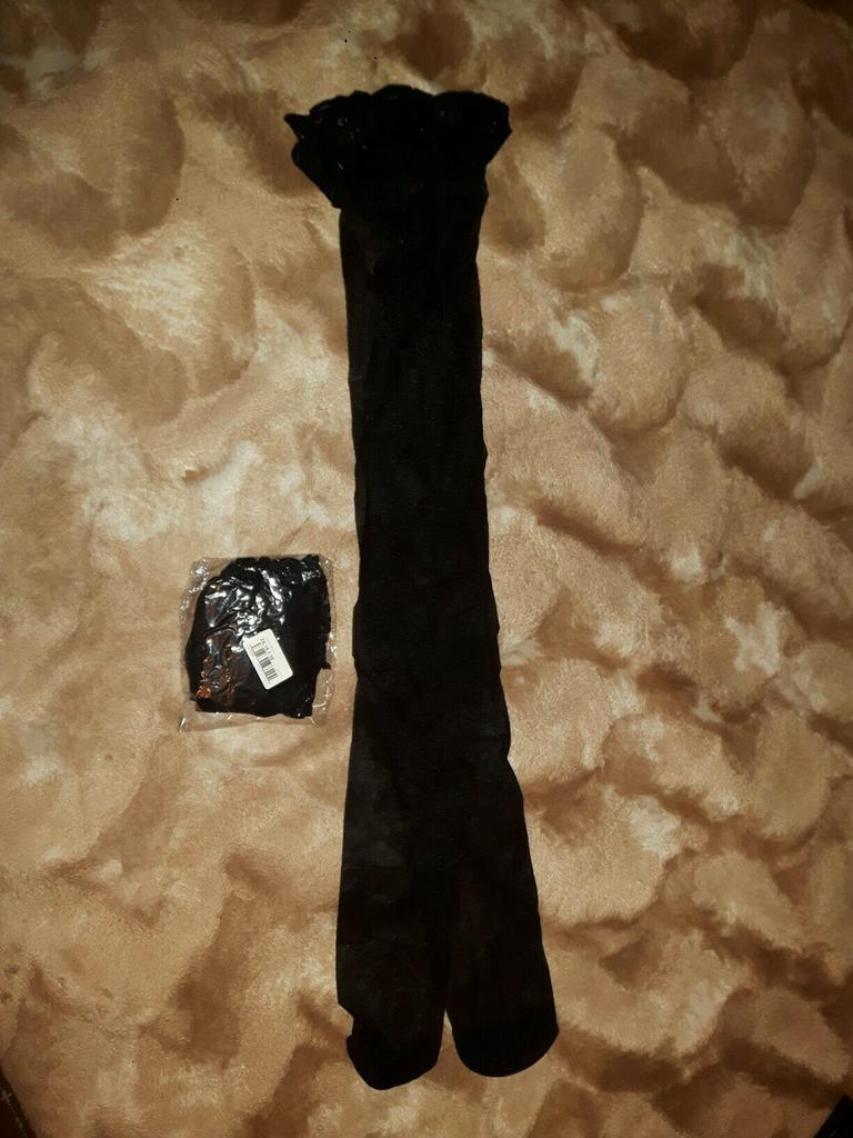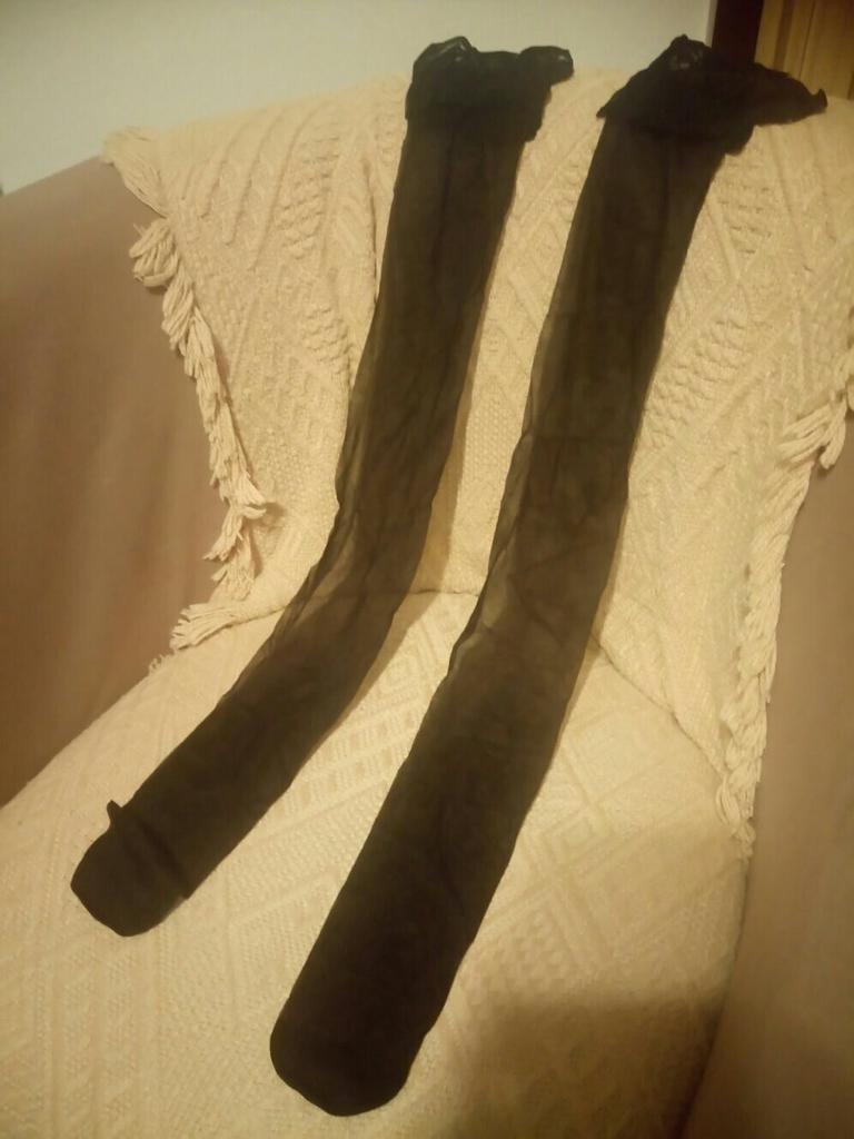 O material para as meias é tão macio e sexy, tão bom quanto os que você pode comprar nas lojas! Não recomendaria tanto se você tem coxas grandes, eu tenho um tamanho 10-12 do Reino Unido e quase me encaixa na parte superior sem os pedaços podres saindo lol