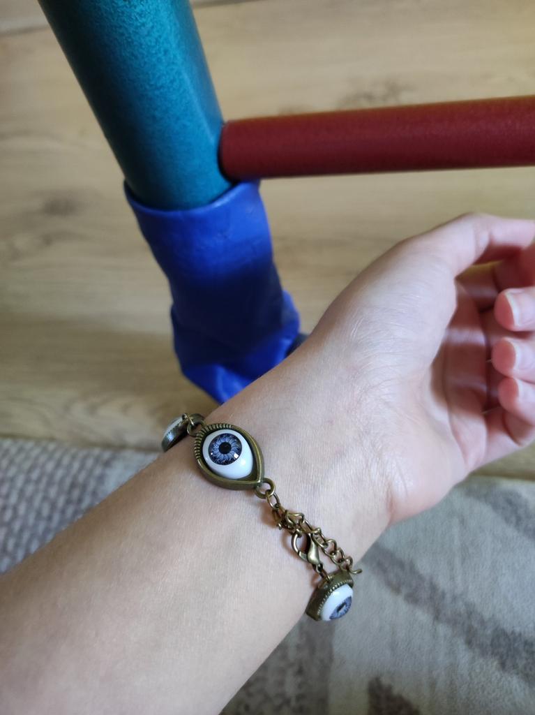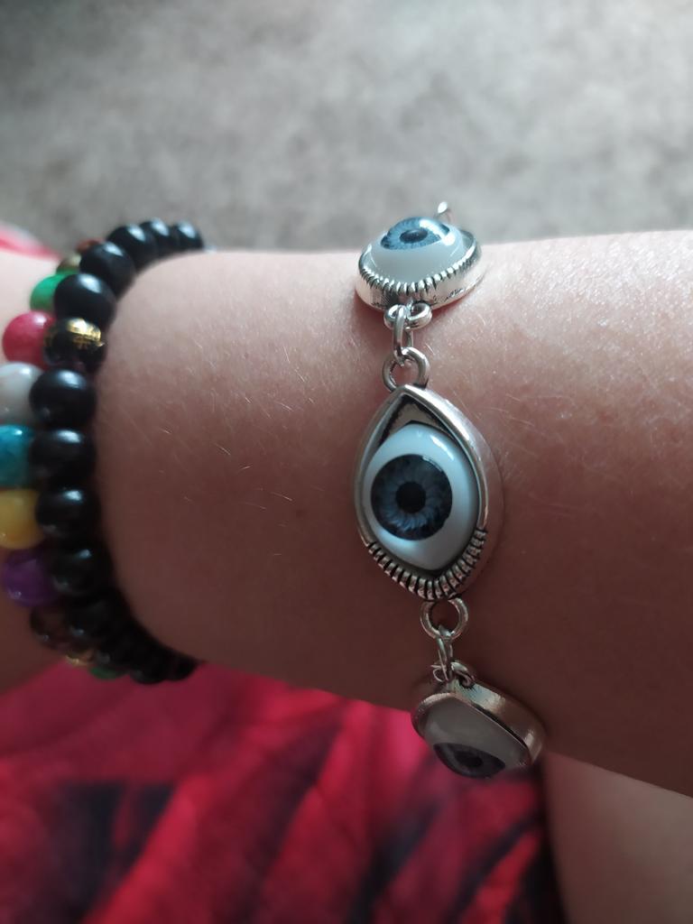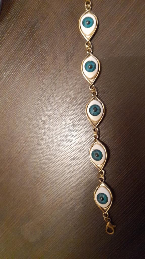 Gosto muito! Parece chique! 5 olhos azuis envolvem todo o pulso, então fica magnífico