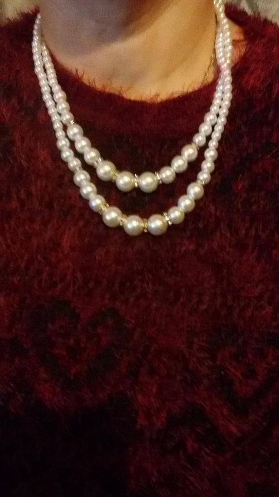 Mulheres pérola contas incrustadas dupla camada colar jóias