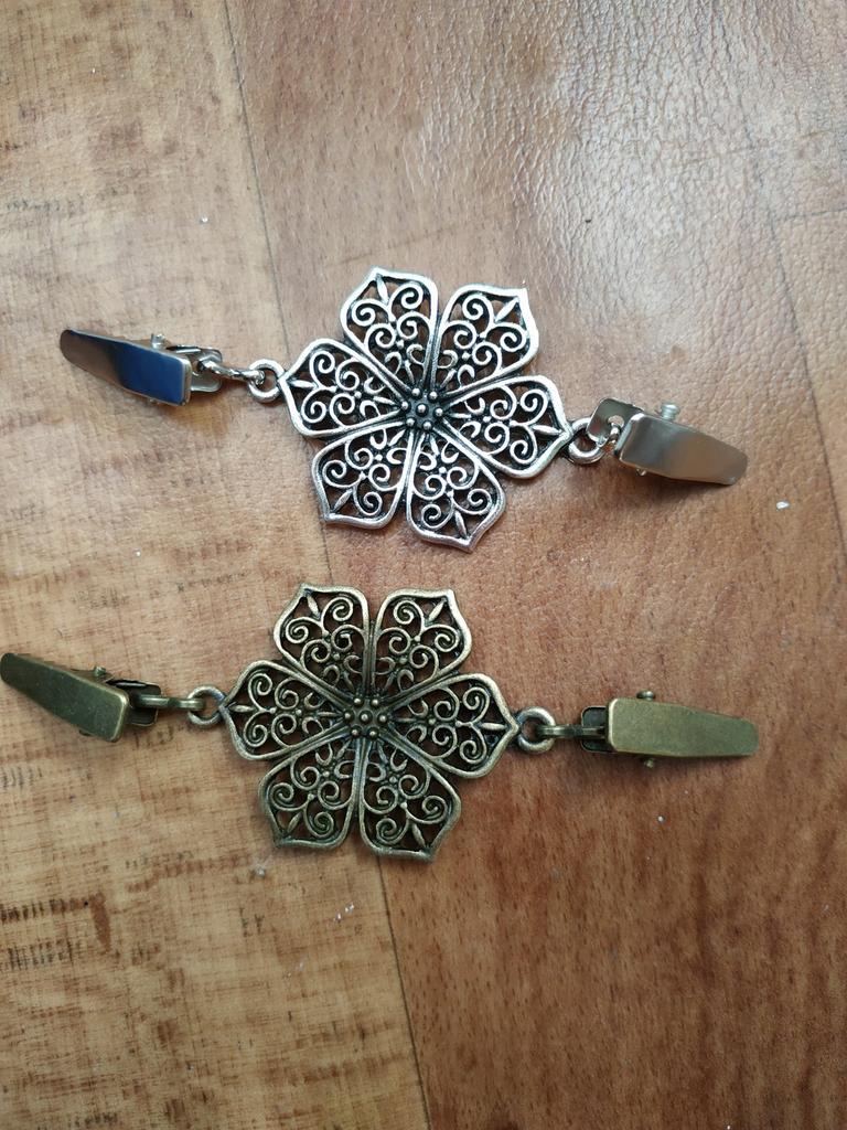 Vintage Hollow Flower Mulheres Dual-End Braçadeira Camisola Camisa Colarinho Cardigan Clipe