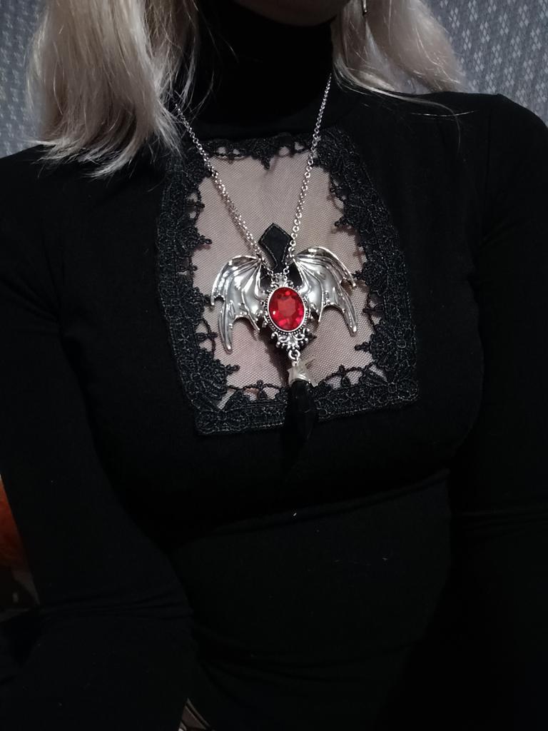 Novo colar gótico de Halloween com pingente de morcego vintage de vampiro vermelho para homens e mulheres