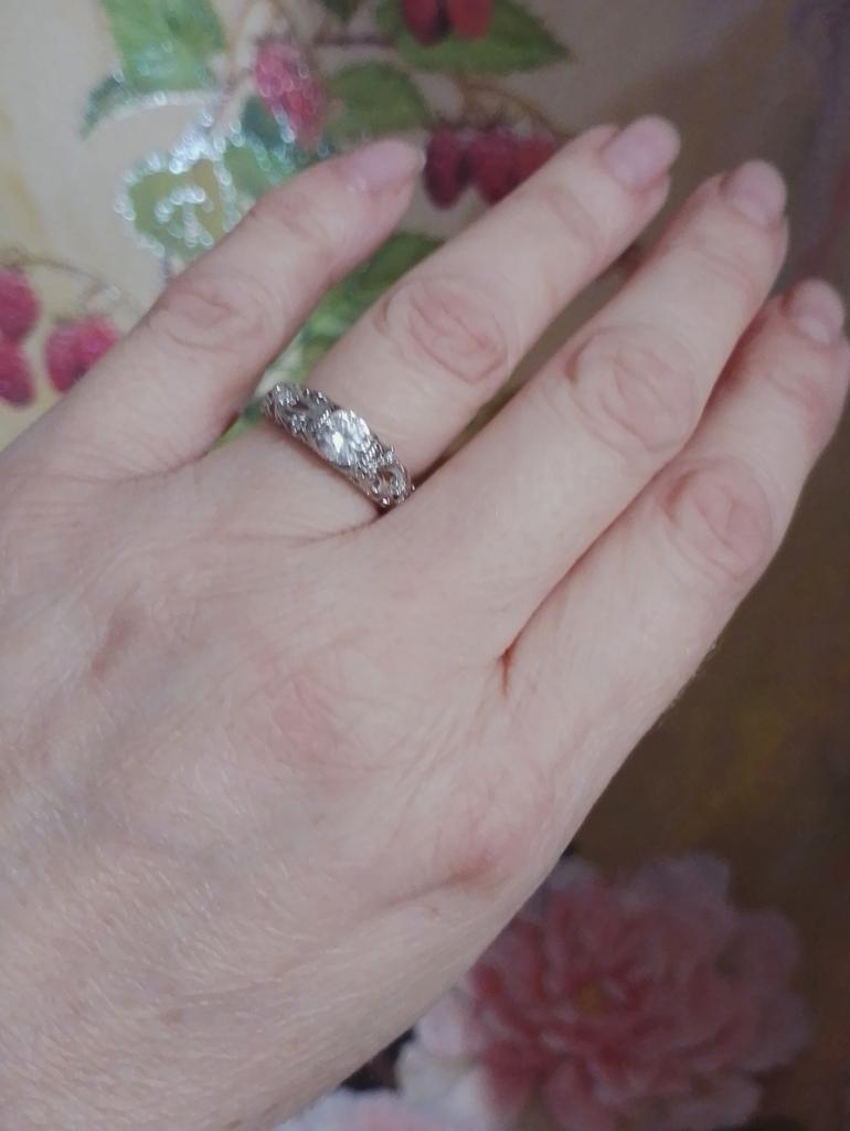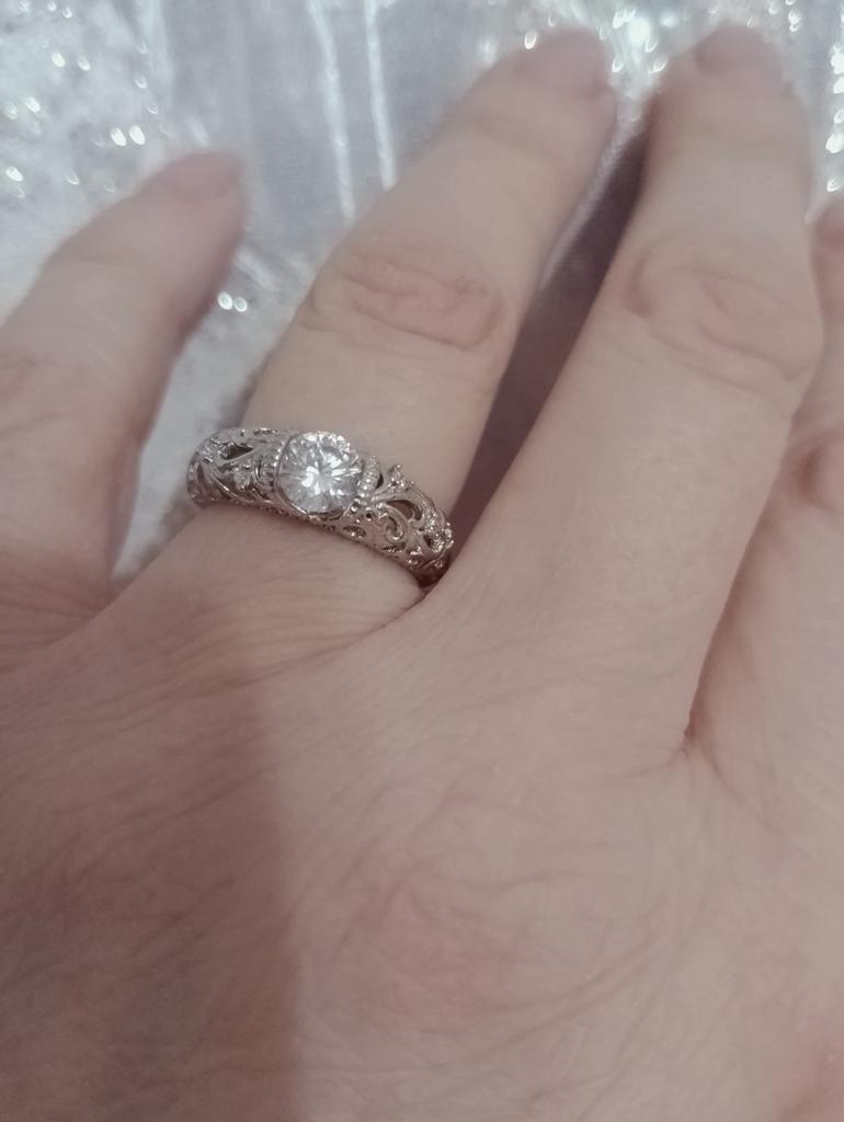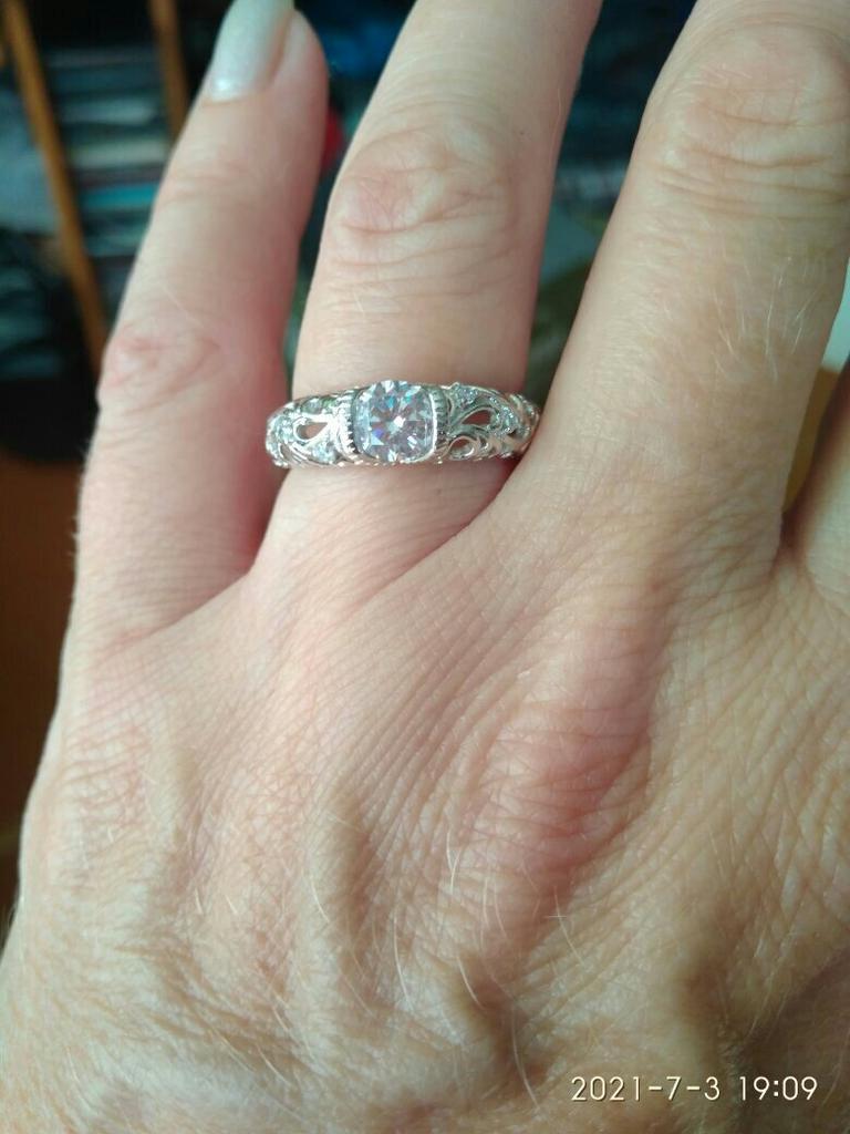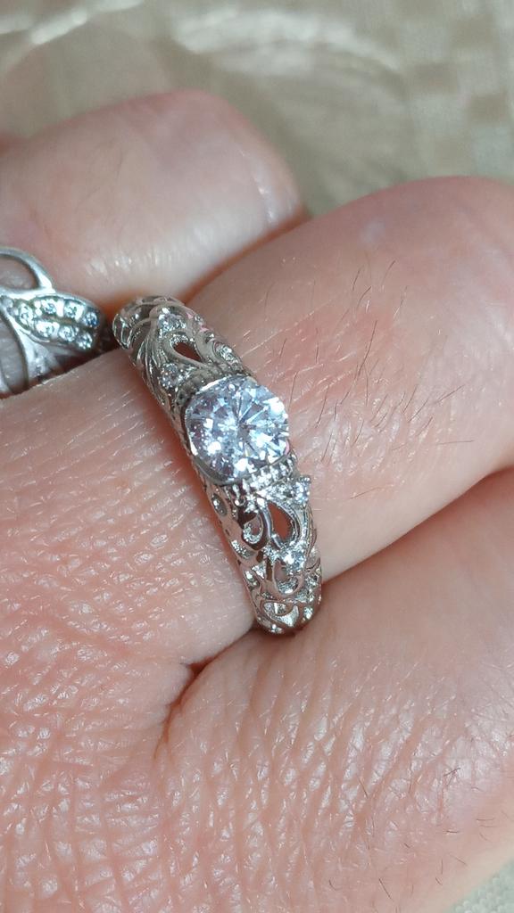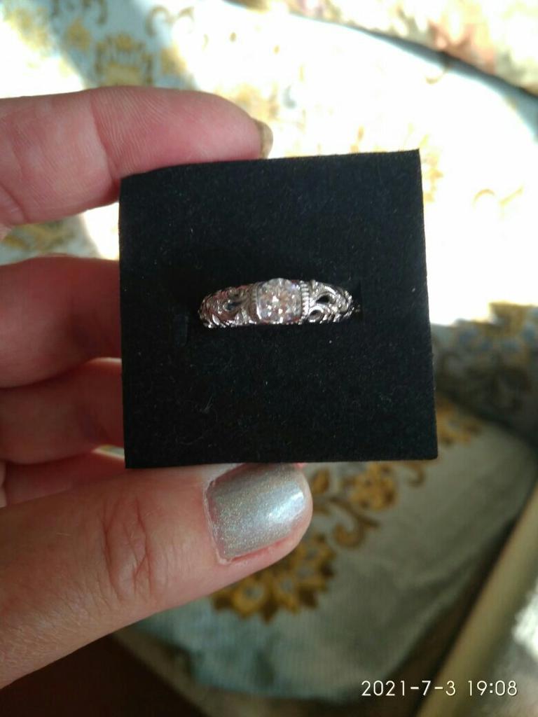 Anel 💍. Adorável 🤗. A céu aberto ❄️. Desempenho de alta qualidade 👍. O tamanho #5 para meu dedo 15,5 é perfeito 👌!