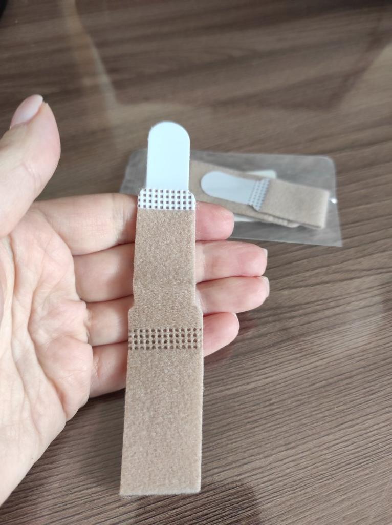 Tudo corresponde à descrição. Velcro é muito bom, segura bem. Mas não nos convinha, não resolve. Nosso dedo está dobrado para baixo e não pode ser esticado.