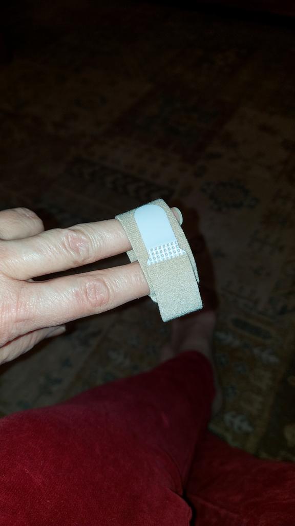 Compre uma bandagem de dedo muito boa. Ajuda, o dedo está fixo e agora está muito confortável