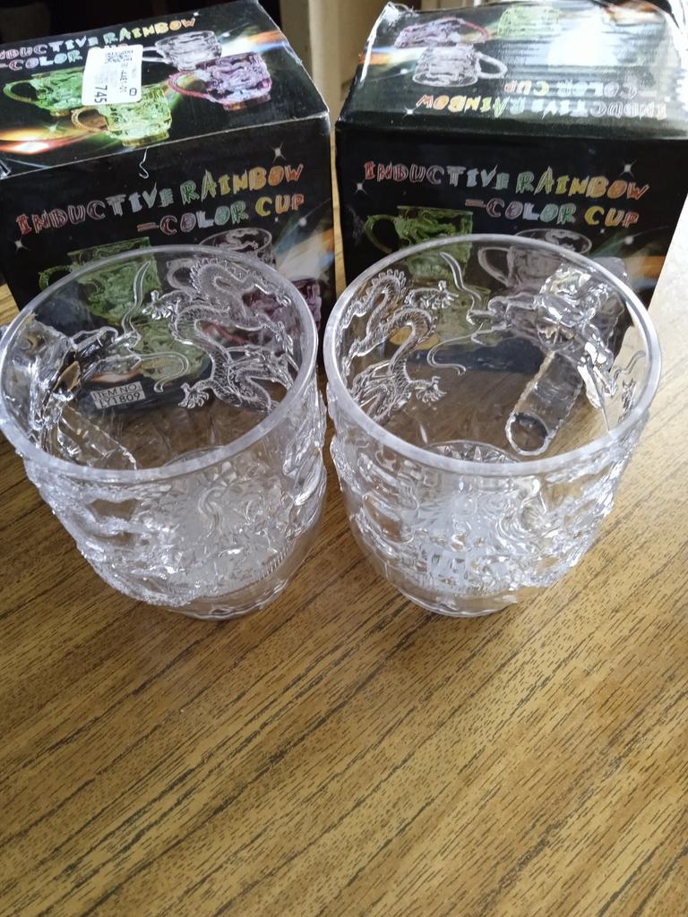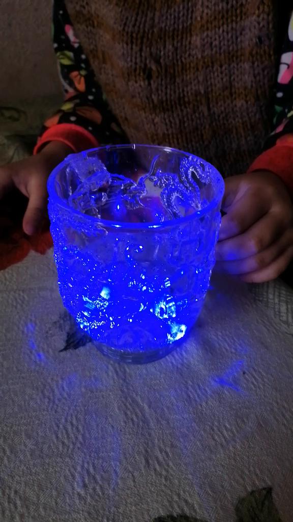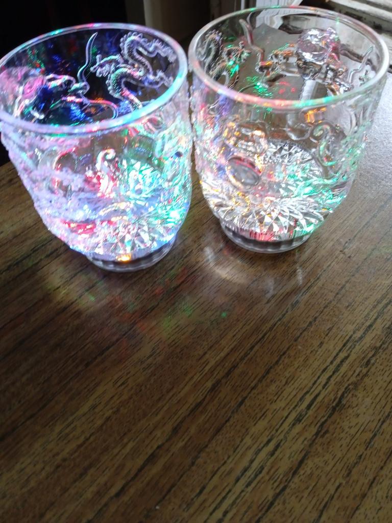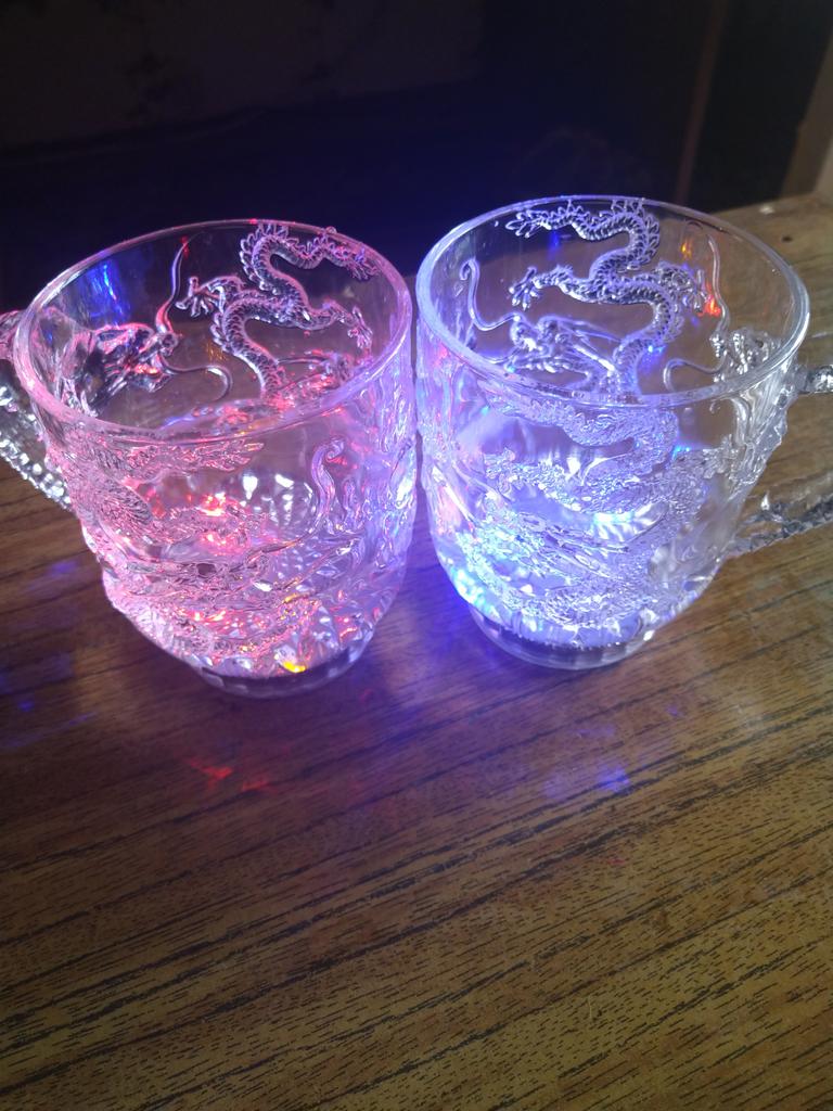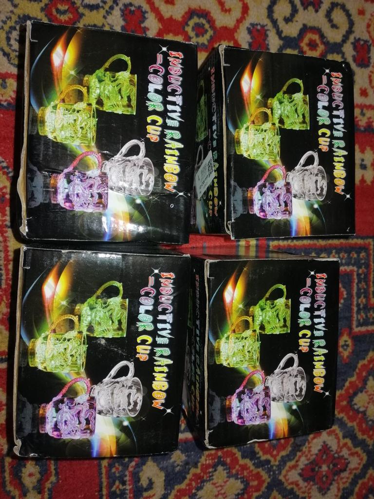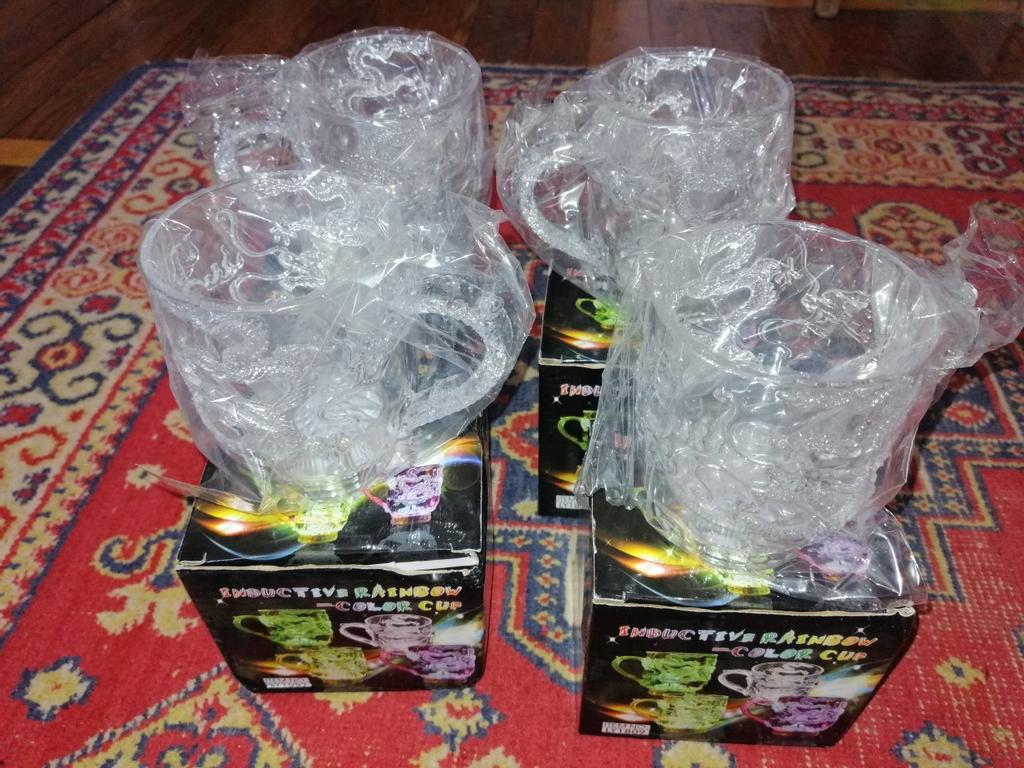 As xícaras brilham muito bem. Eles são feitos de plástico. No geral, o presente é muito bom