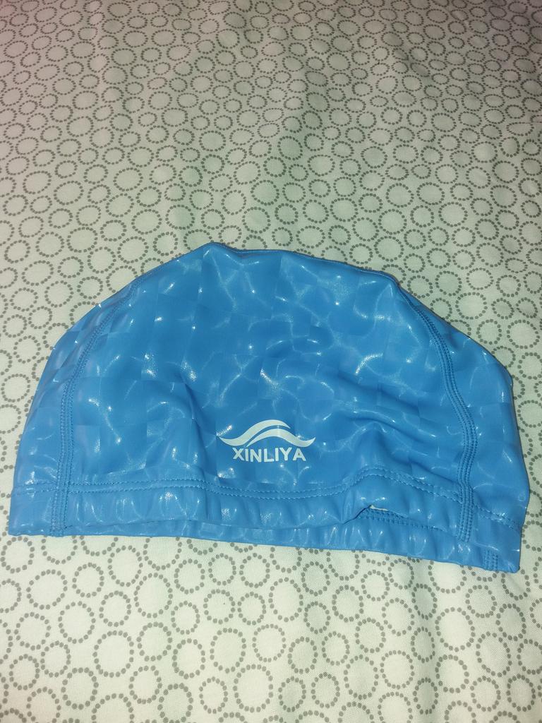 Por fim, uma touca de natação que cabe na minha filha e mantém seus cabelos compridos secos 🤗. A nossa de silicone sempre quebrou, ou a professora conseguiu rasgar as unhas acidentalmente ao colocá-la. Então espero que dure muito tempo 😉.