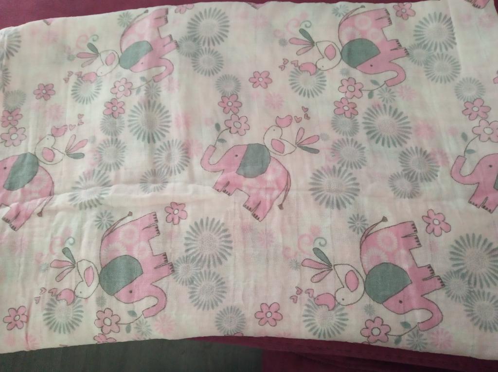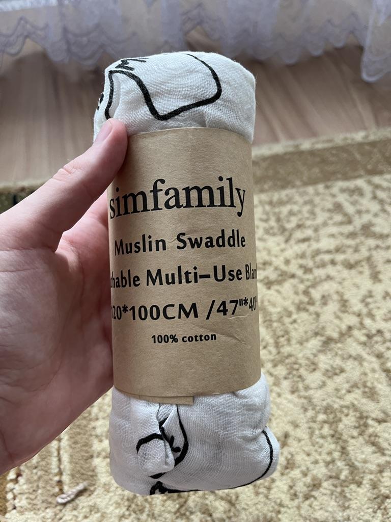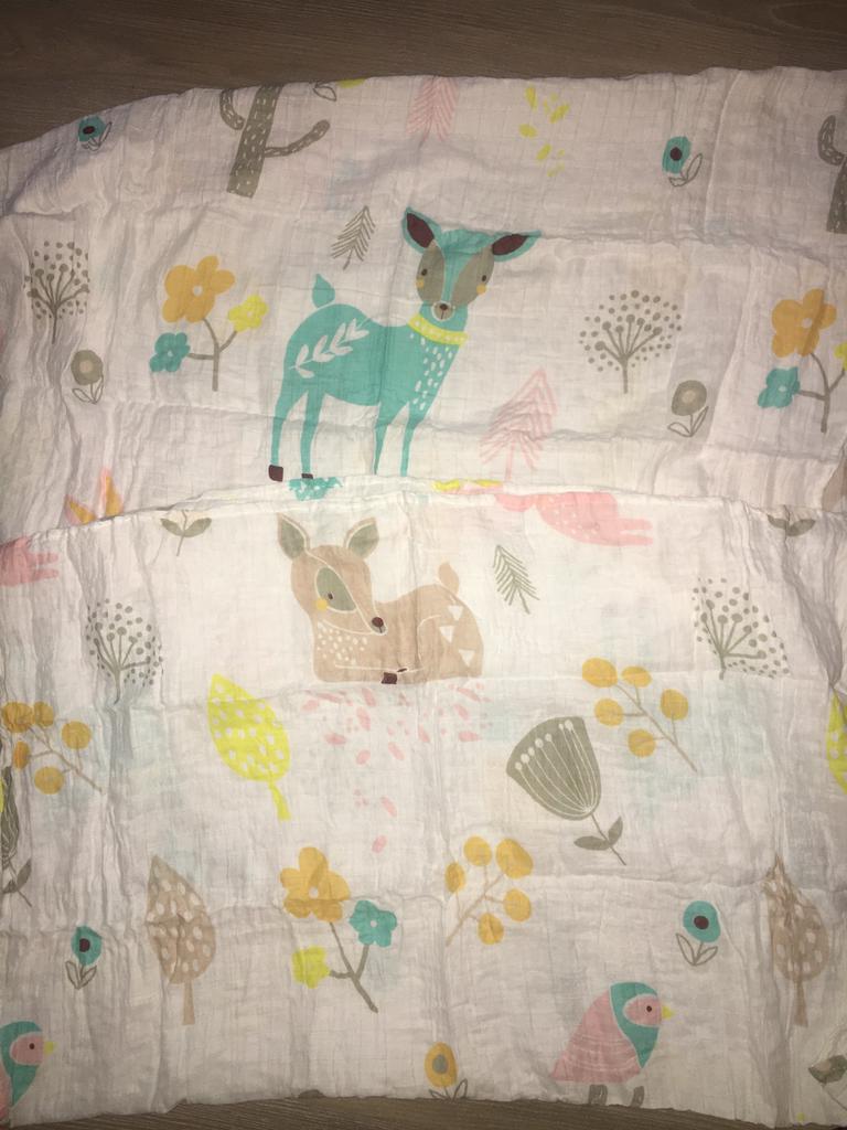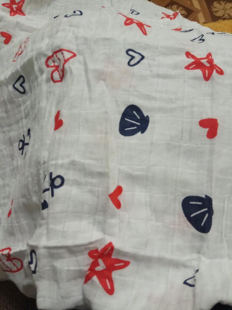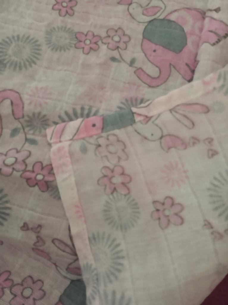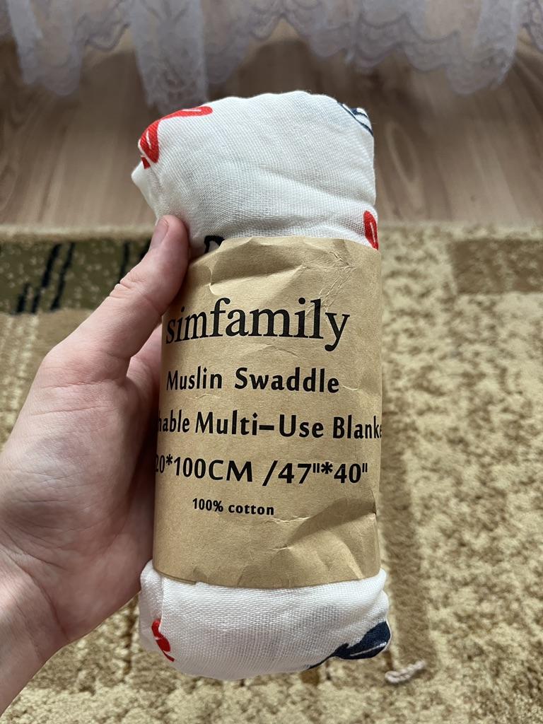 Uma fralda bonita e de alta qualidade, fina, embora eu esperasse que o número de camadas de musselina fosse maior, pois estava escrito que era um cobertor. Entrega rápida.