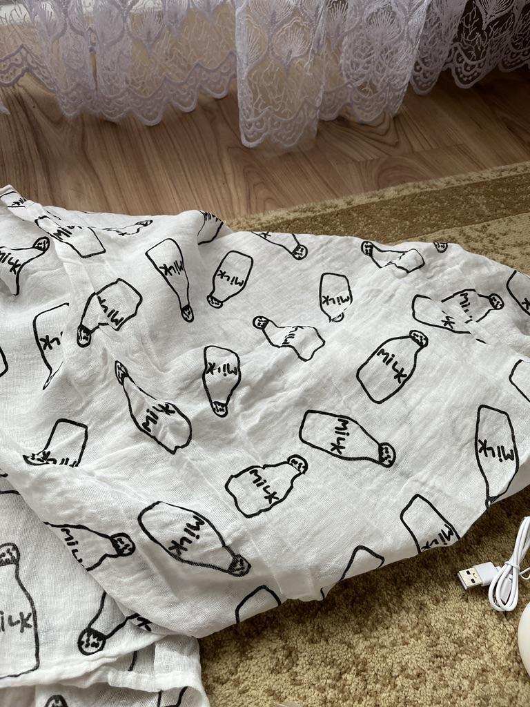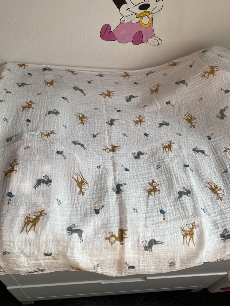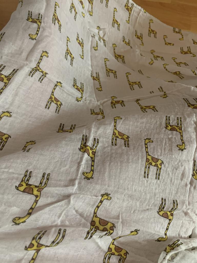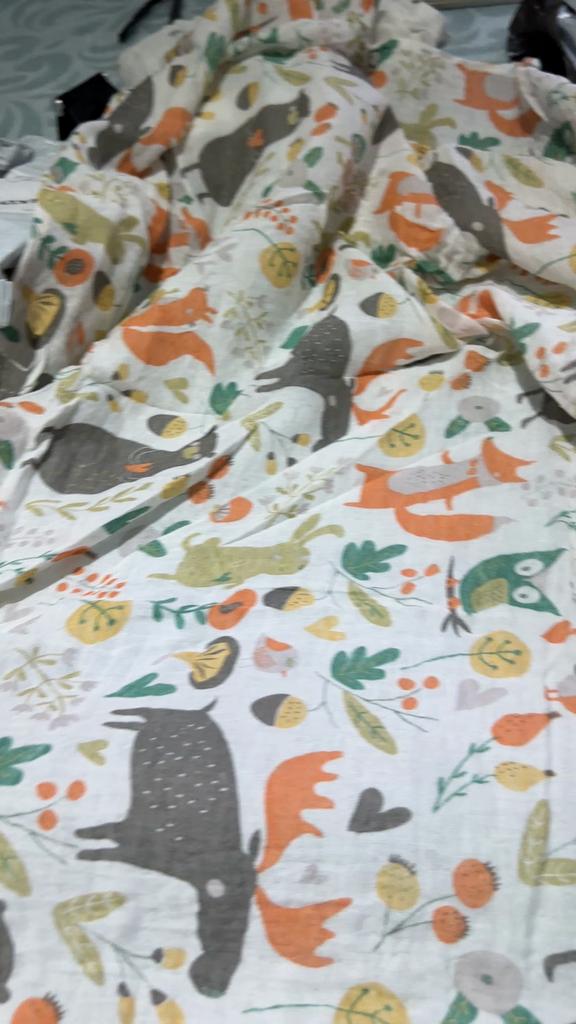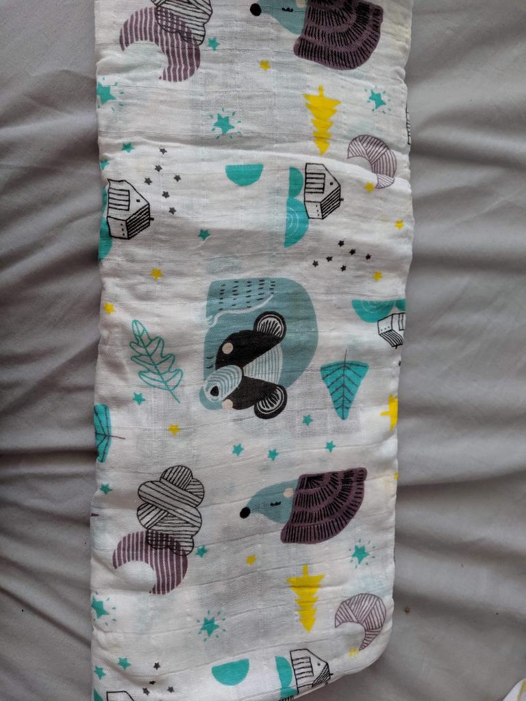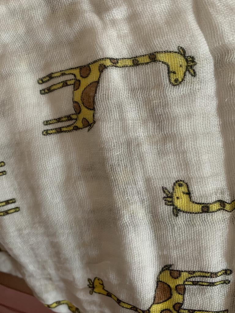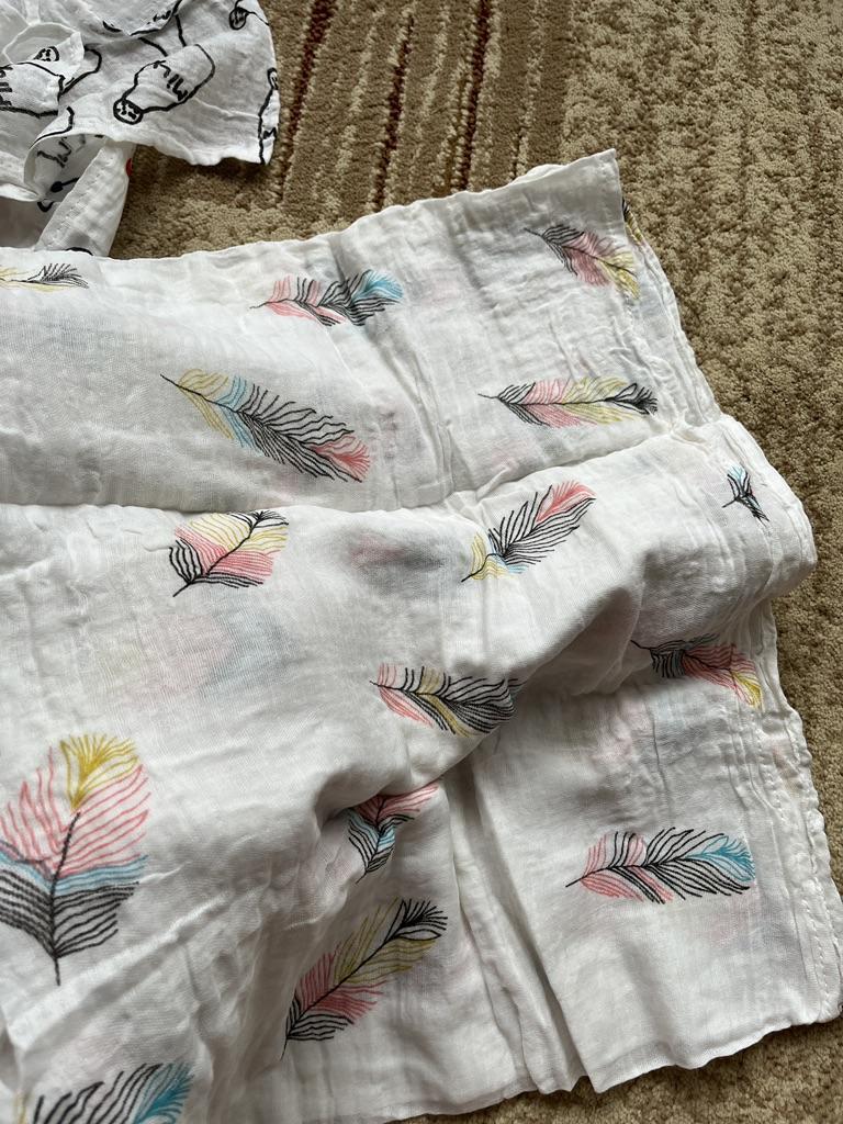 Uma fralda bonita e de alta qualidade, fina, embora eu esperasse que o número de camadas de musselina fosse maior, pois estava escrito que era um cobertor. Entrega rápida.