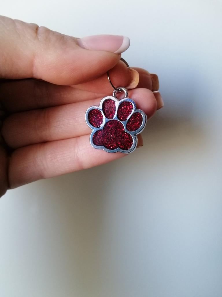 Etiqueta de identificação de cachorrinho com padrão de pata para presente de joias