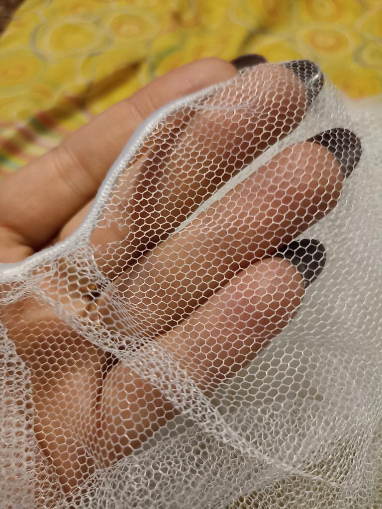 A grade é macia, bastante espaçosa. Elástico elástico. À medida que coloco um carrinho de bebê, complementarei a revisão.