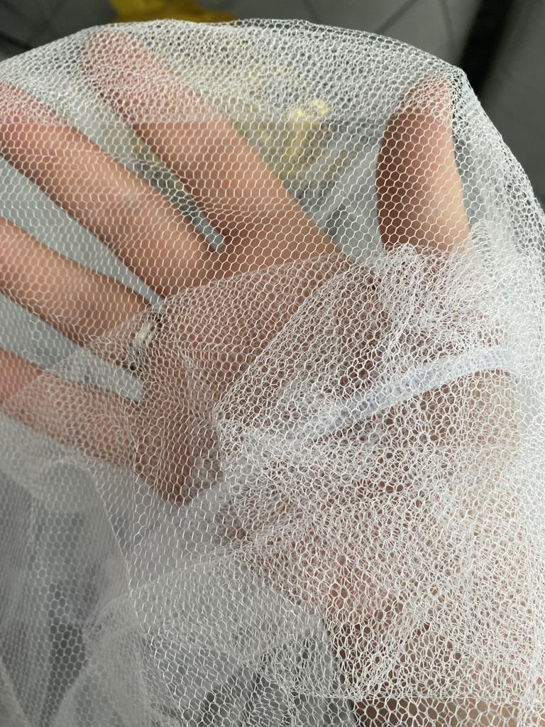 O pacote chegou em três semanas. Malha sem defeitos, costurada ligeiramente desigual, mas sem furos e fios extras. Cobre completamente o carrinho. Recomendo o vendedor e o produto.