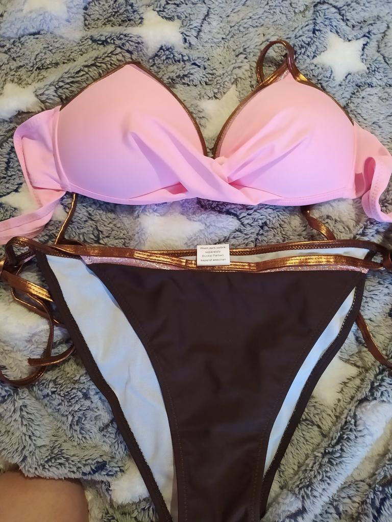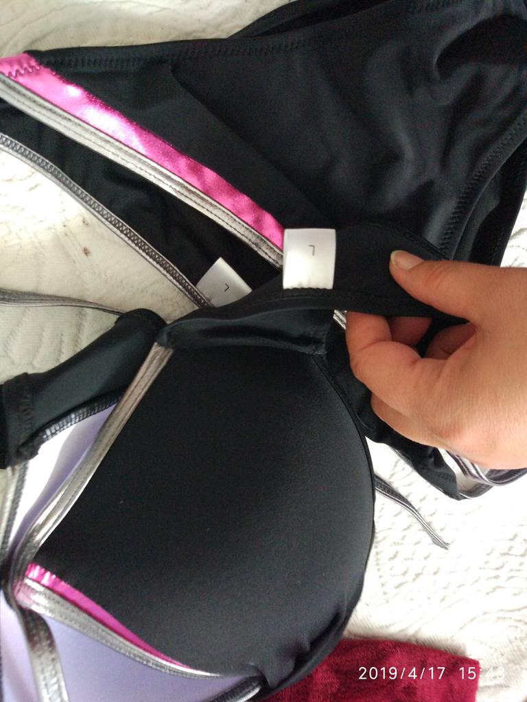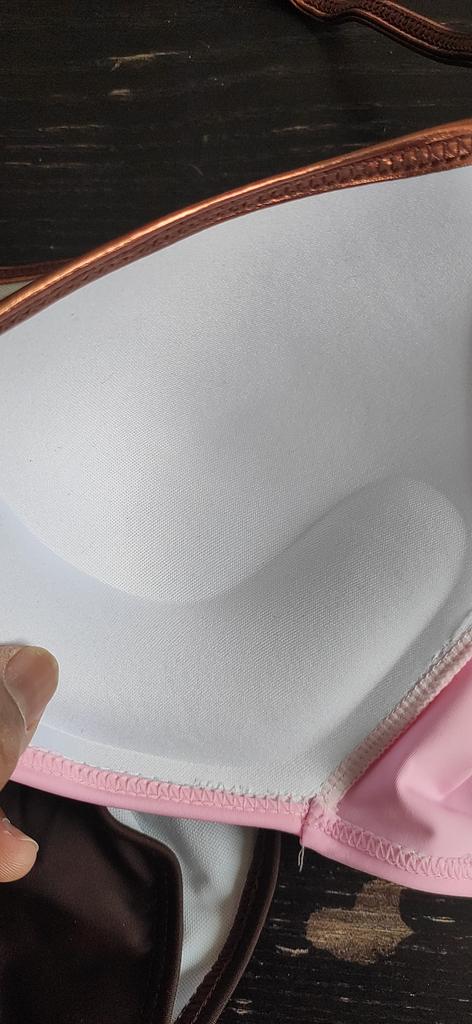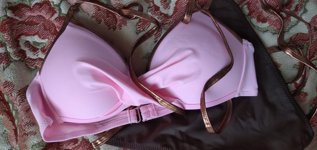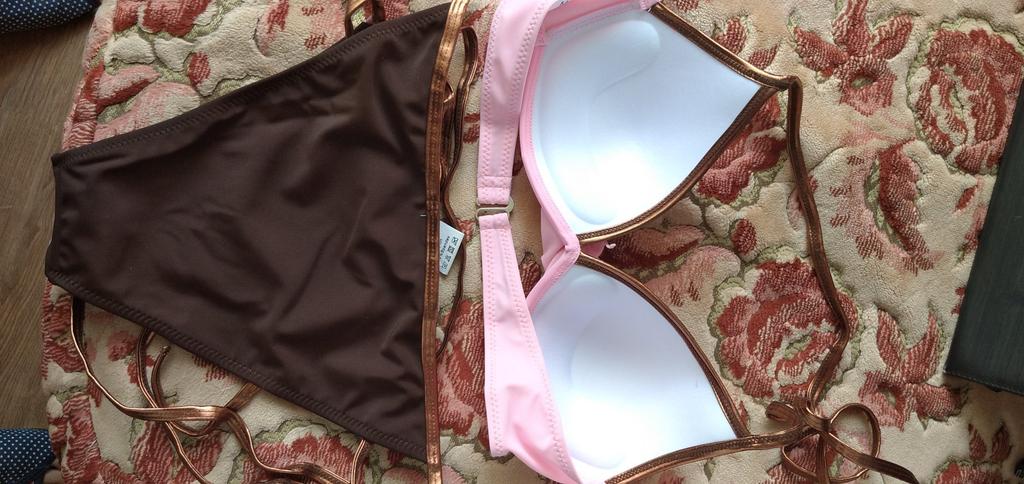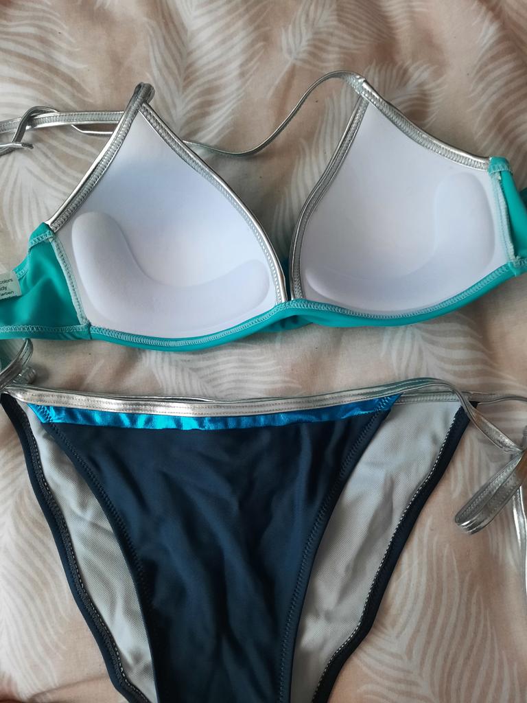 O sutiã é menor. Por isso escolhi 2 tamanhos maiores, apesar de ser tamanho S. Já tenho um destes fatos de banho, por isso sabia que seria melhor levar um tamanho maior. Caso contrário, eles são realmente muito legais