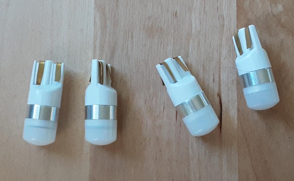 Estes LEDs T10 têm uma agradável emissão de luz. Infelizmente, um dos dois LEDs fornecidos apenas pisca após algumas semanas de uso e não pode mais ser usado.