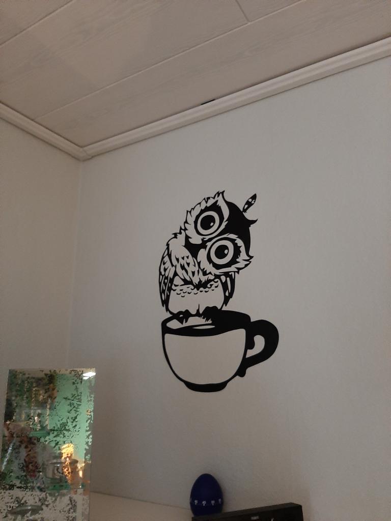 Minha coruja de café é muito fofa. Ela vai sentar na porta da minha cozinha. As dimensões estão corretas.