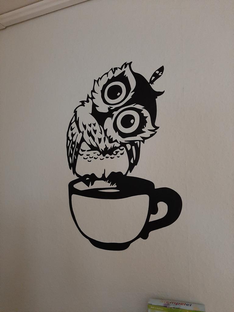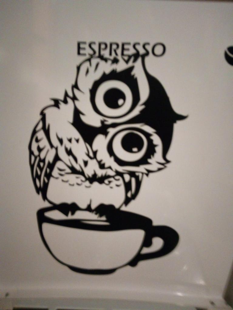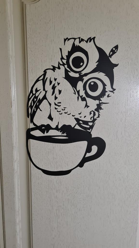 Engraçado desenho animado coruja xícara de chá café para cozinha adesivos decoração de casa adesivo de parede vivo