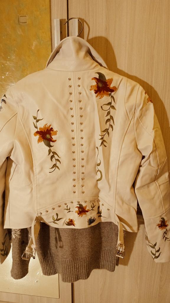 O casaco é bom, só tiveram que cortar as alças, fica melhor sem elas, meus ombros já estão altos, ainda tem um pouco de alargamento nas laterais e as mangas parecem uma luva. 96-76-99, comprimento da manga 62 cm, comprimento 50 cm, jaqueta 48 cm Couro cremoso parecido com couro natural, tudo costurado com muito capricho, a fechadura é de ferro, precisa ser um pouco lubrificada, em geral fica lindo. , nas lojas e mercados não é assim que você vai encontrar. Obrigado Joom.