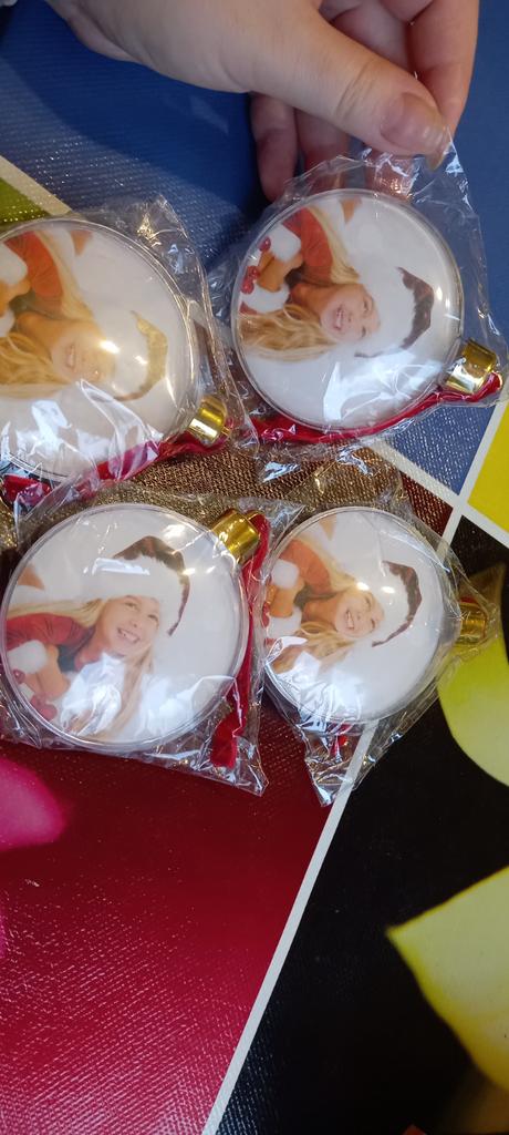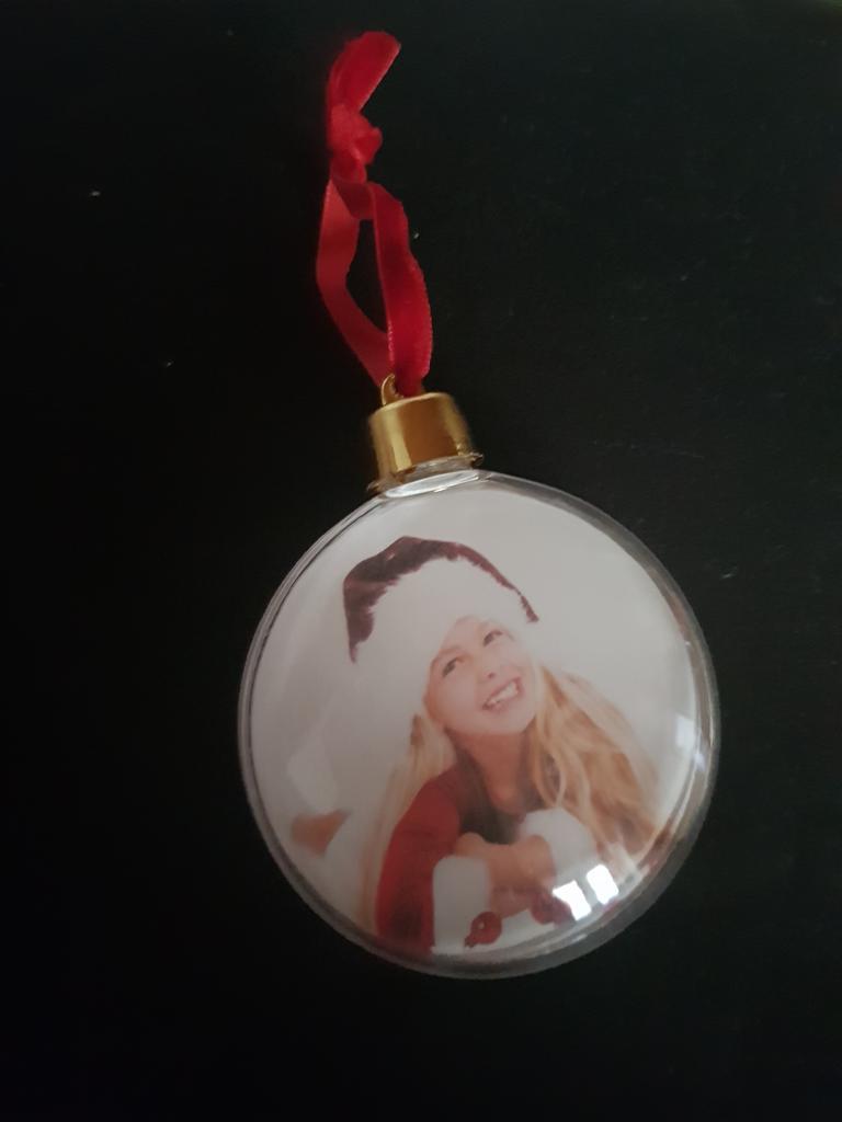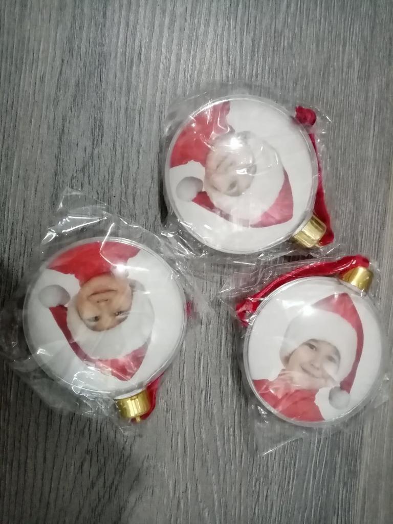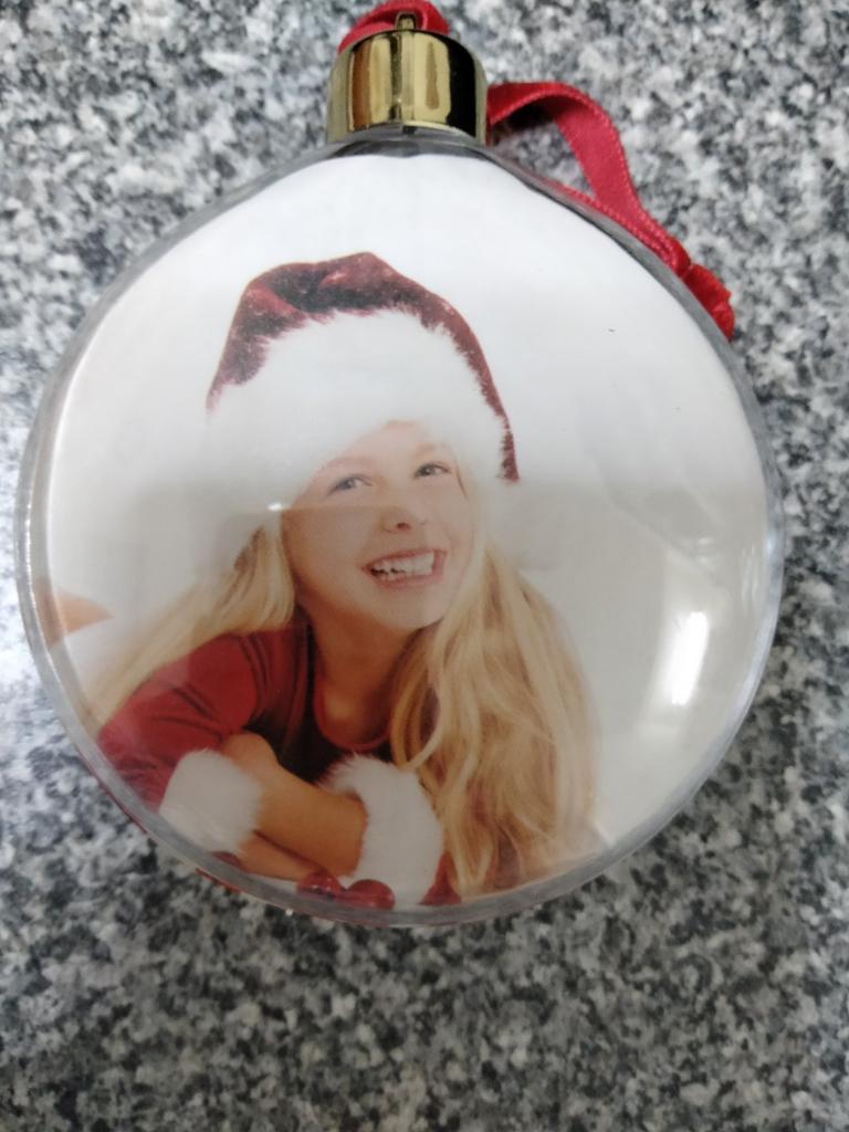 Conforme a foto. Muito bonito com sua pequena fita vermelha, tem um diâmetro de 7,5 cm. Muito prático para personalizar a sua árvore de Natal. Entrega em 1 mês.