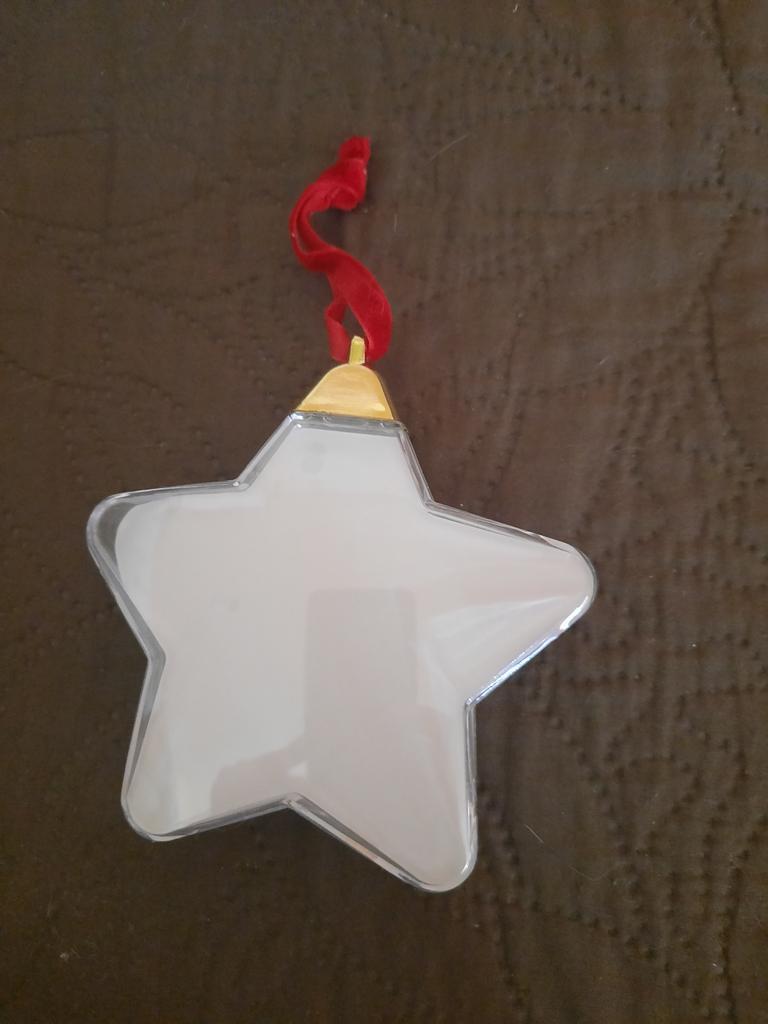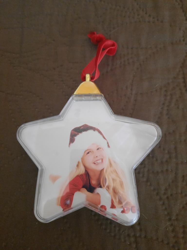 Conforme a foto. Este é o segundo que encomendei, mas recebi muito tarde, então ficará para o próximo ano na árvore. A ponta dourada se retira e a estrela se abre para poder colocar uma foto pessoal. Prazo de entrega 52 dias.